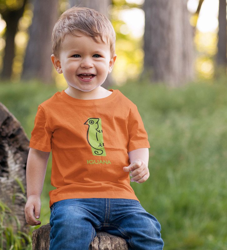 Intelligent Iguana, Boys Printed Crew Neck Tshirt (orange)