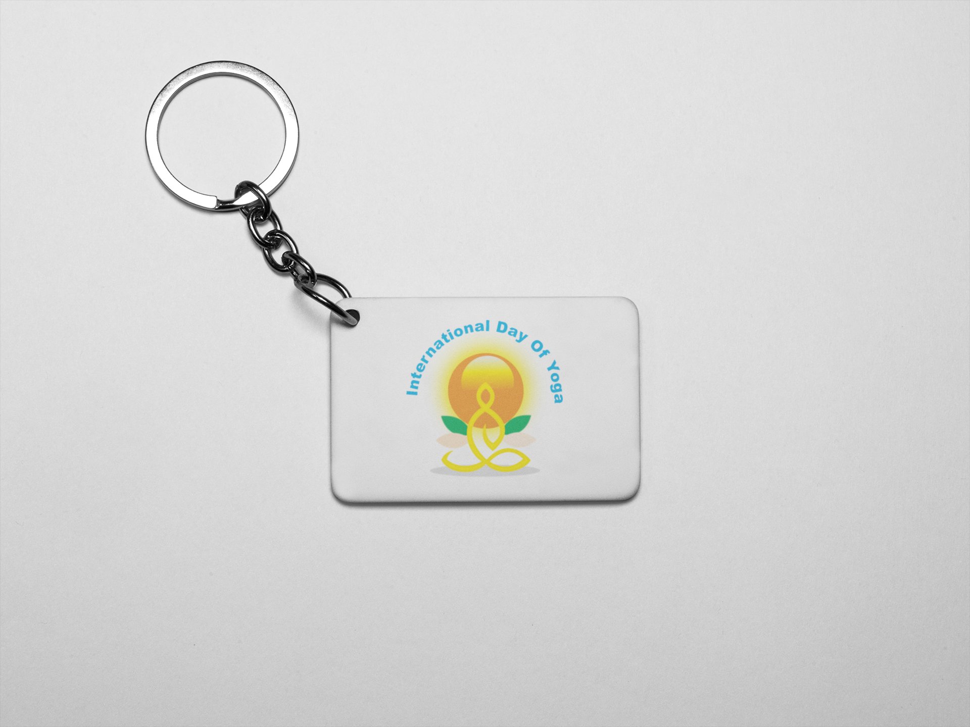 International Yoga Day Text In Sky Blue - Printed Acrylic Keychains(Pack Of 2)