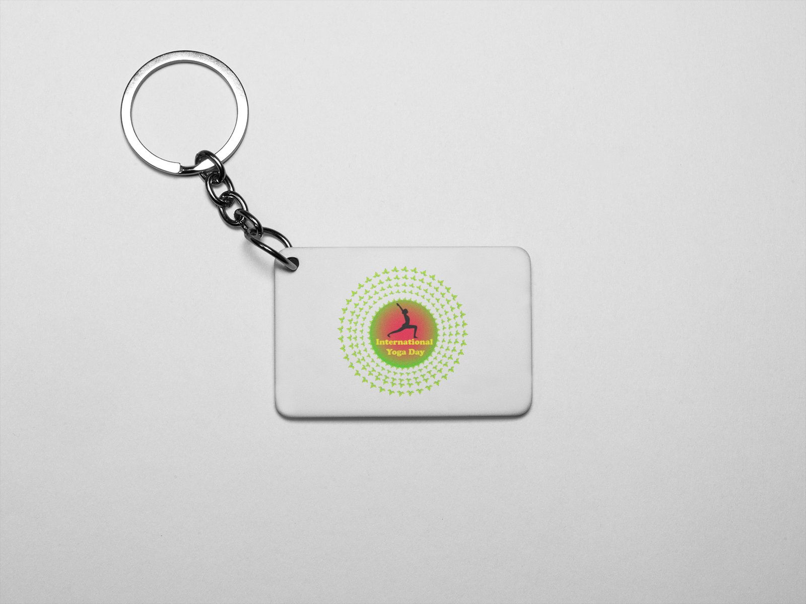 International Yoga Day Text In Yellow - Printed Acrylic Keychains(Pack Of 2)