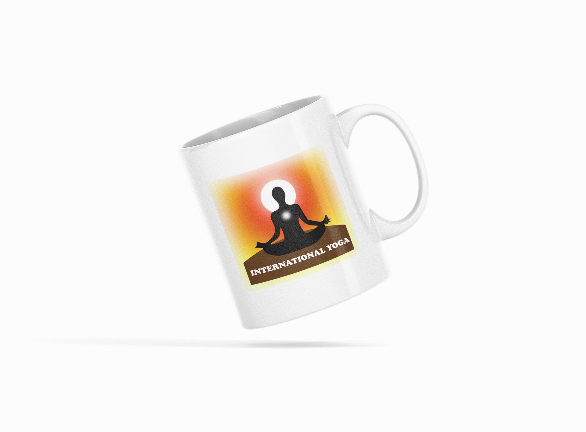 International Yoga Text In White - Printed Coffee Mugs For Yoga Lovers
