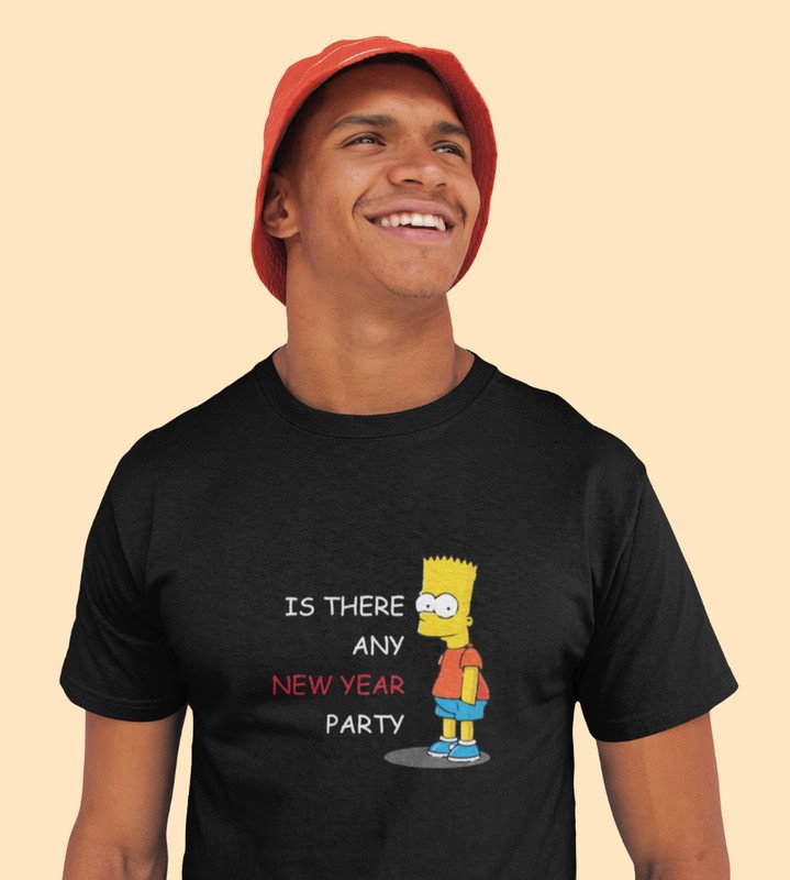 Is There Any Party? Black Printed T-shirt For Mens On New Year Theme Best Gift For New Year