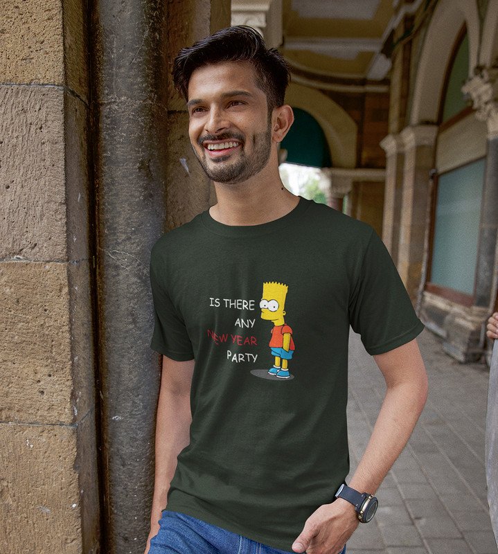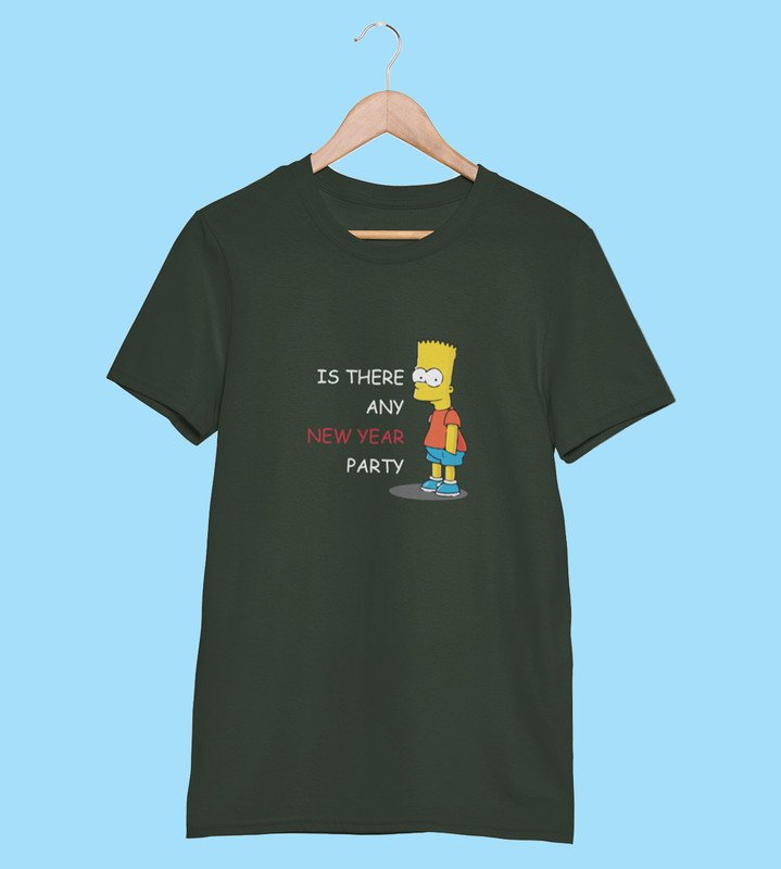 Is There Any Party? Green Printed T-shirt For Mens On New Year Theme Best Gift For New Year