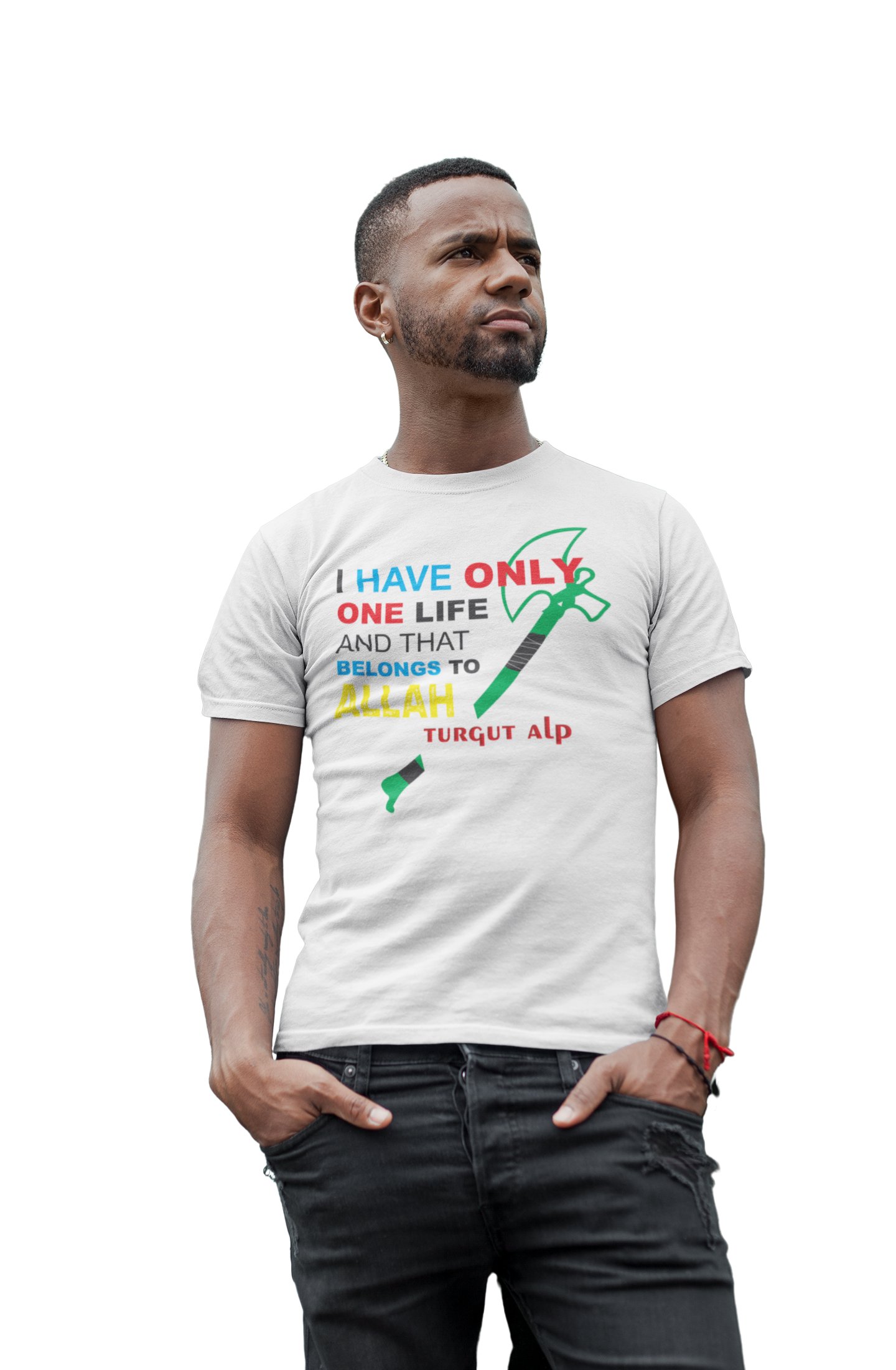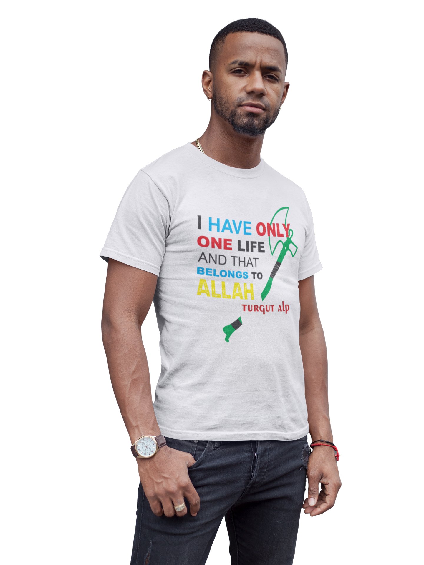 It belongs to Allah - White - The Ertugrul Ghazi - 100% cotton t-shirt for Men with soft feel and a stylish cut