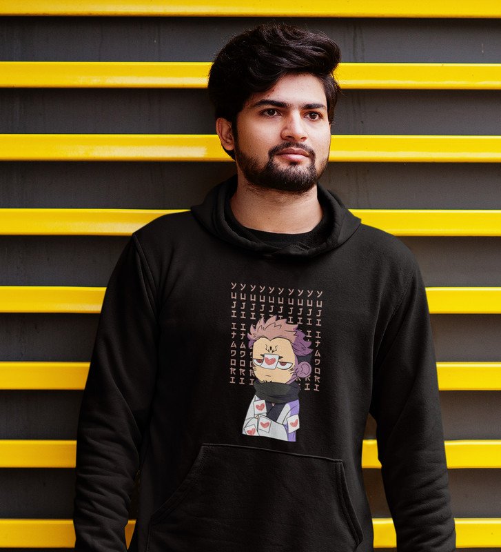 Itadori In Love Printed Cotton Black Hoodies For Mens and Boys