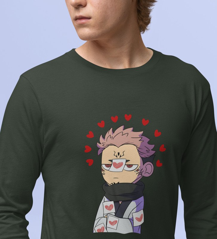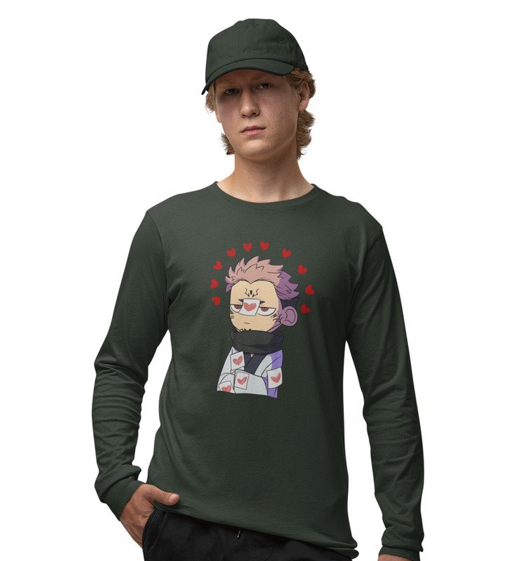 Itadori In Love Printed Cotton Green Full Sleeves Tshirt For Mens and Boys