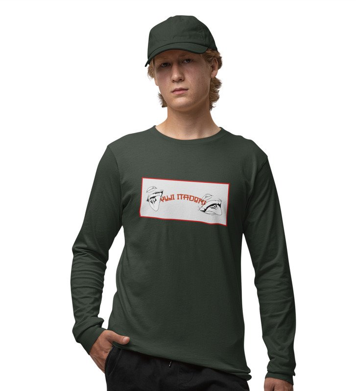 Itadori Two Faces, Printed Cotton Green Full Sleeves Tshirt For Mens and Boys