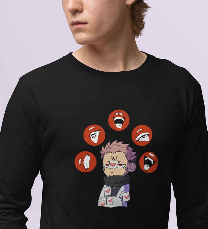 Itadori's Five Faces Cotton Black Full Sleeves Tshirt For Mens and Boys