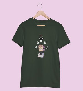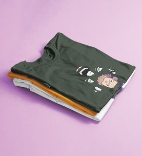 Itadori's Five Faces Cotton Green Tshirt For Mens and Boys