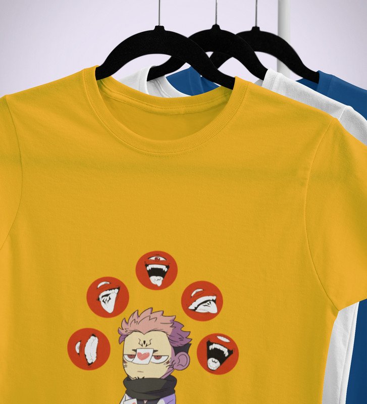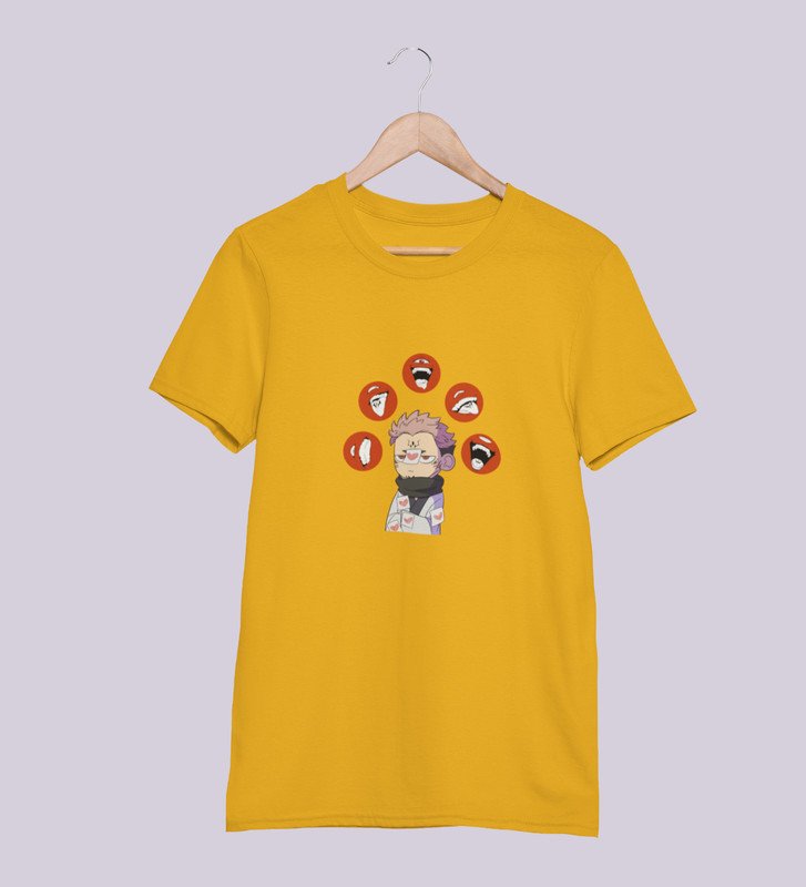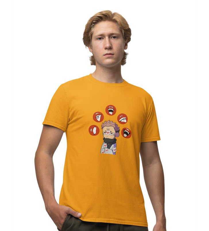 Itadori's Five Faces Cotton Yellow Tshirt For Mens and Boys