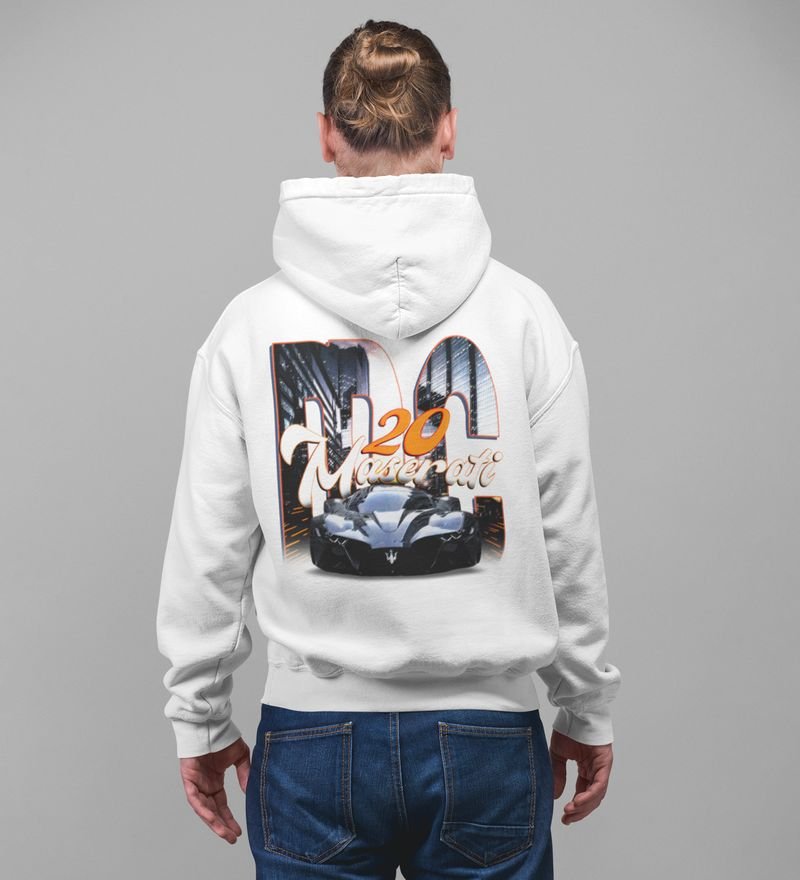 Italian Elegance Meets Raw Power Luxury Supercar Printed White Hoodie for Men