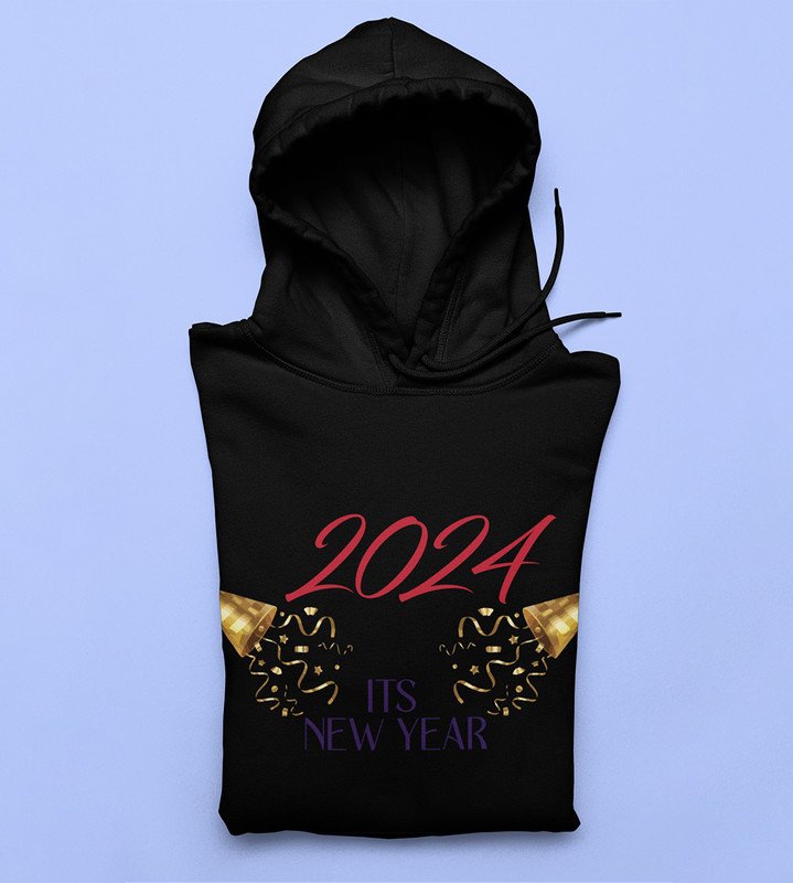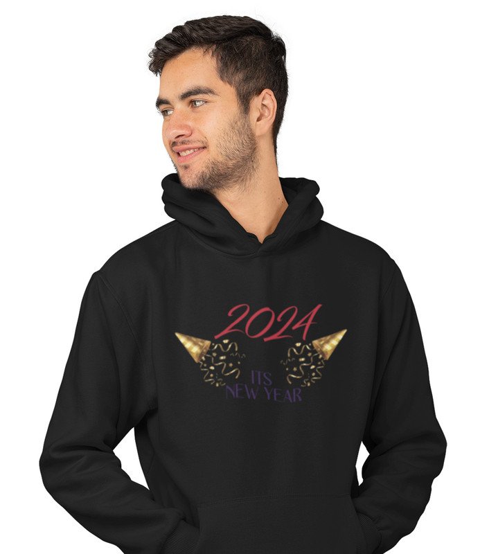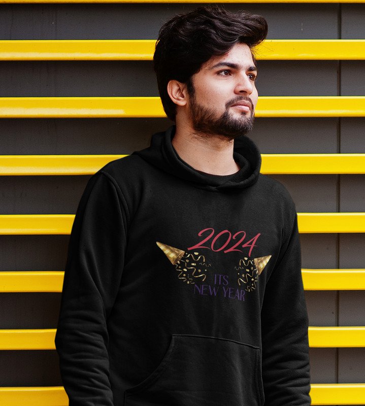 It's A New Year, Black Graphic Printed Hoodies For Mens Boys