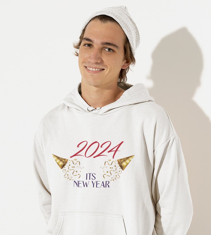 It's A New Year, White Graphic Printed Hoodies For Mens Boys
