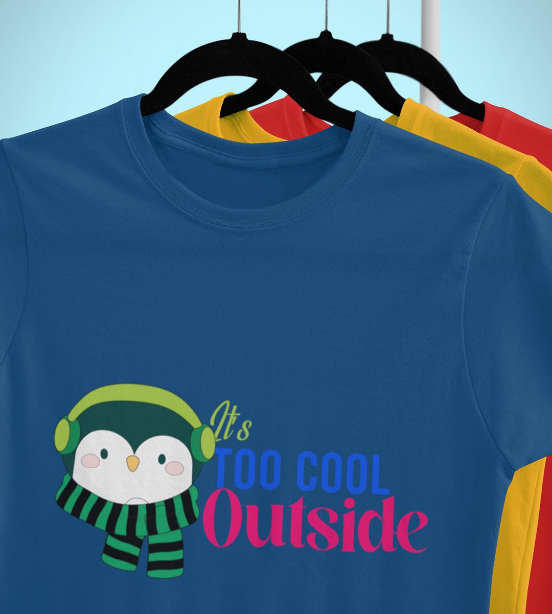 It's Too Cold Outside : Unique Winter Printed T-shirt (Blue) Unique Gift For Boys Girls