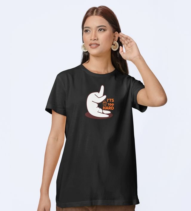 It's Too Hard! Black Round Neck Cotton Half Sleeved WomenT-Shirt with Printed Graphics