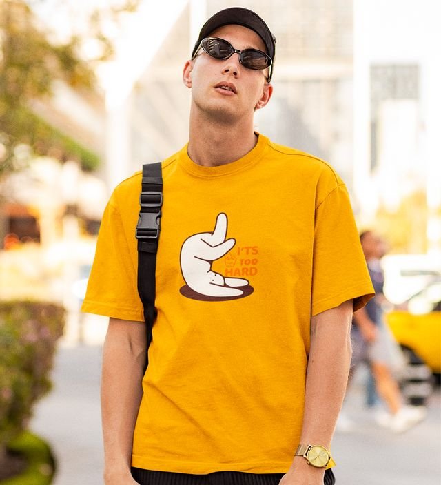 It's Too Hard! Yellow Round Neck Cotton Half Sleeved Men T-Shirt with Printed Graphics