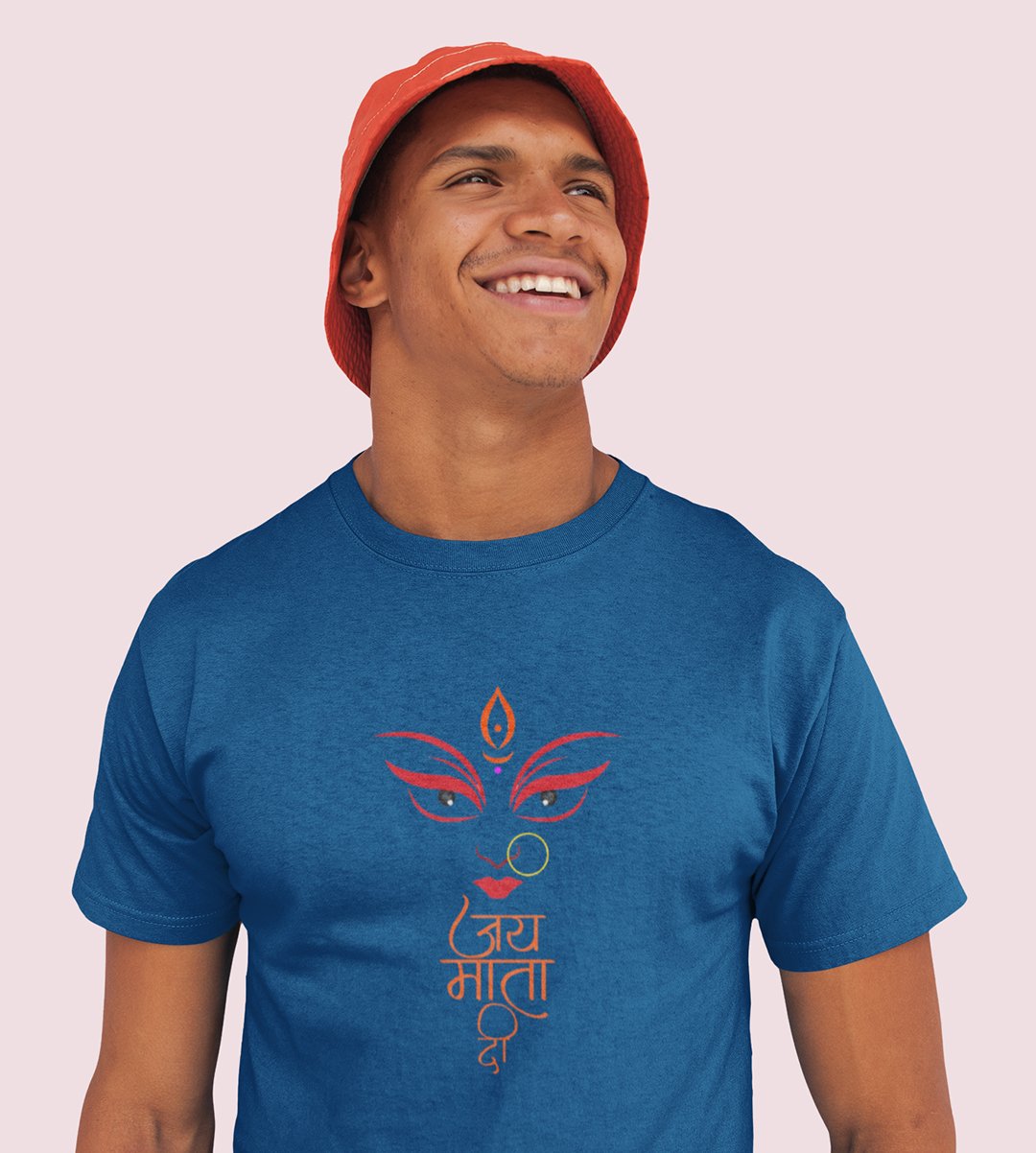 Jai Mata Di printed unisex adults round neck cotton half-sleeve blue tshirt specially for Navratri festival/ Durga puja