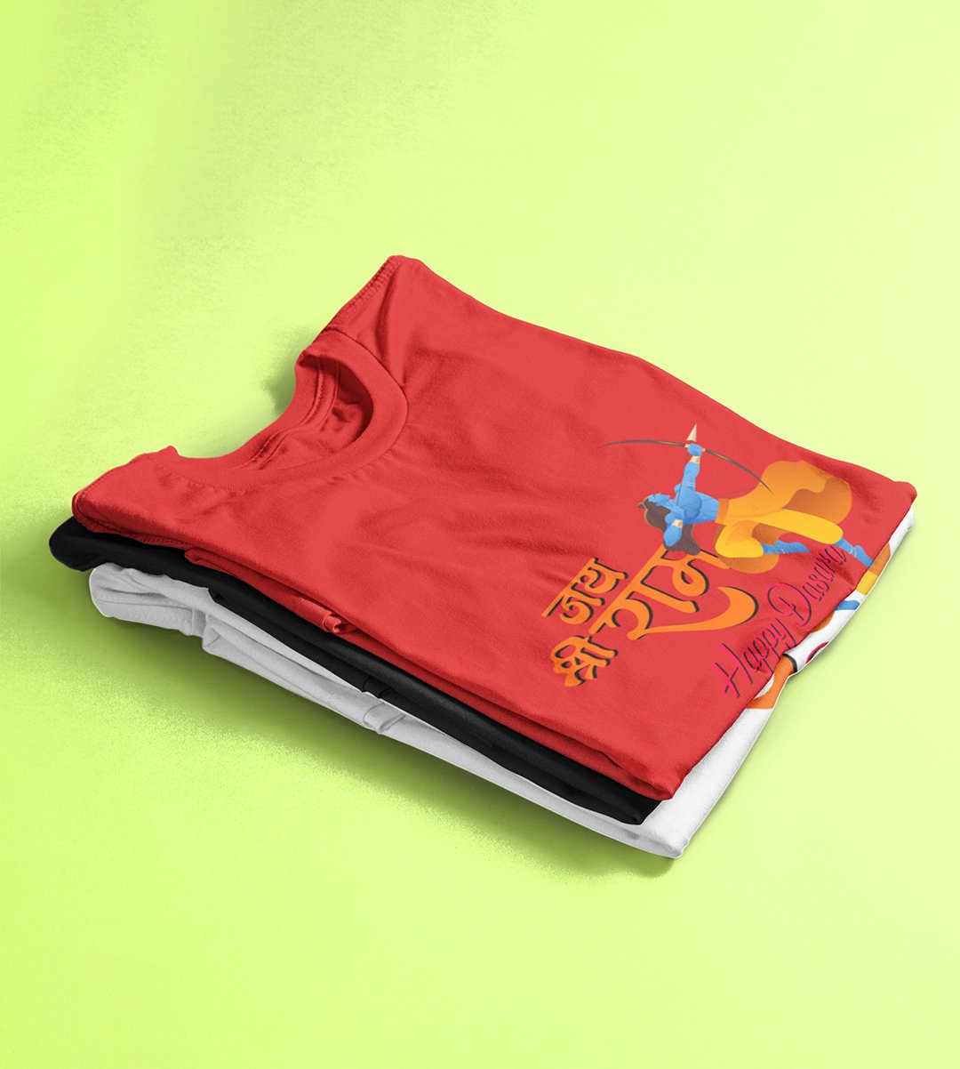Jai Shree Ram printed unisex adults round neck cotton half-sleeve red tshirt specially for Navratri festival/ Durga puja