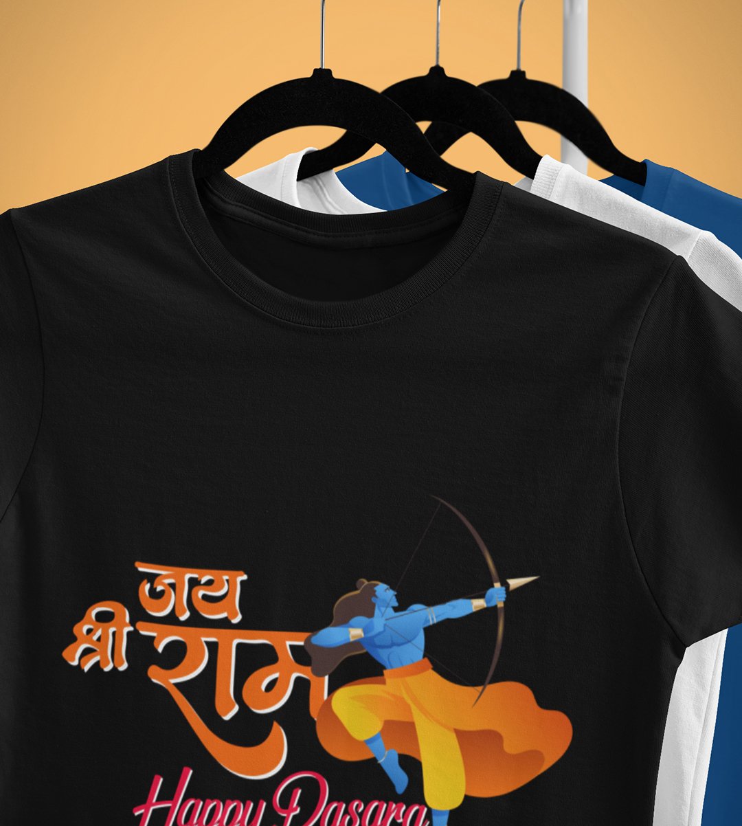 Jai shree ram text printed unisex adults round neck cotton half-sleeve black tshirt specially for Navratri festival/ Durga puja
