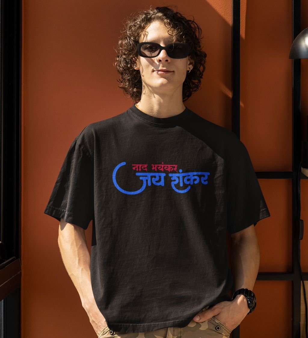 Jay Shankar Black Round Neck Cotton Half Sleeved Men T Shirt with Printed Graphics