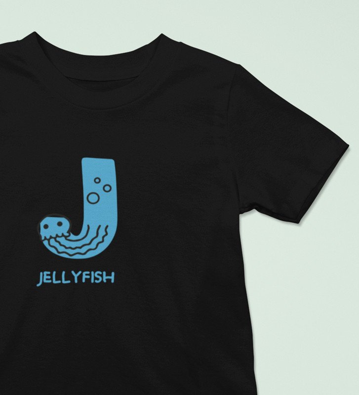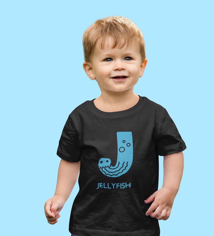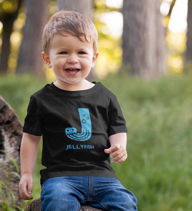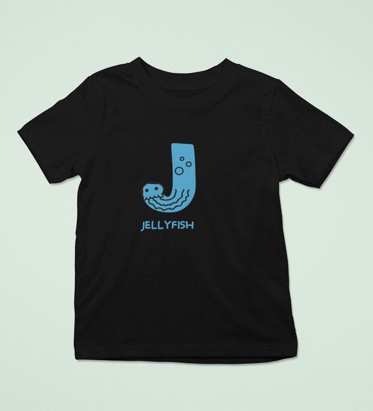 Jolly Jellyfish, Boys Cotton Text Print Tshirt (black)