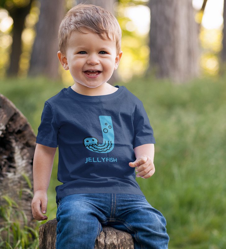 Jolly Jellyfish, Boys Cotton Text Print tshirt (Navy blue)