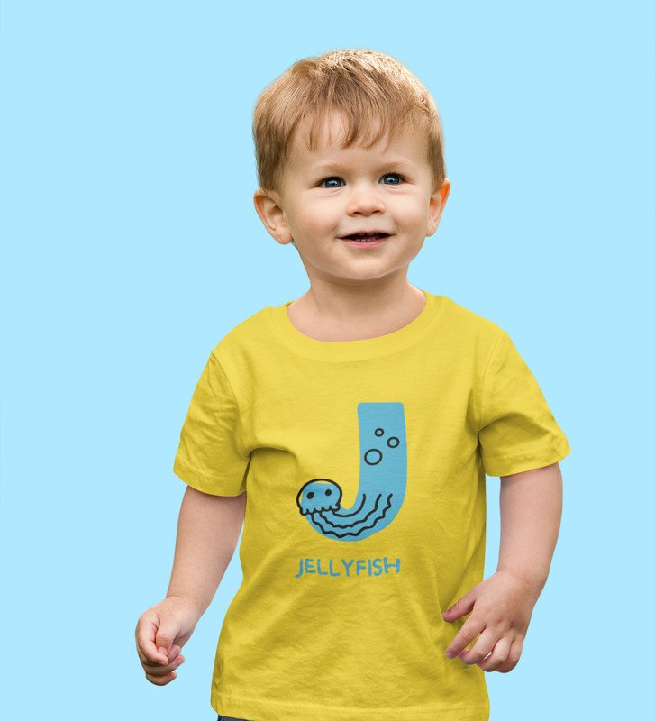 Jolly Jellyfish, Boys Cotton Text Print tshirt (yellow)