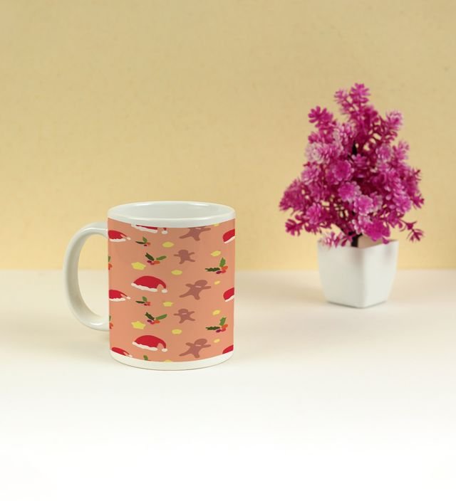 Jolly Santa Hats and Christmas Fun in a Pattern Full Printed Coffee Mug