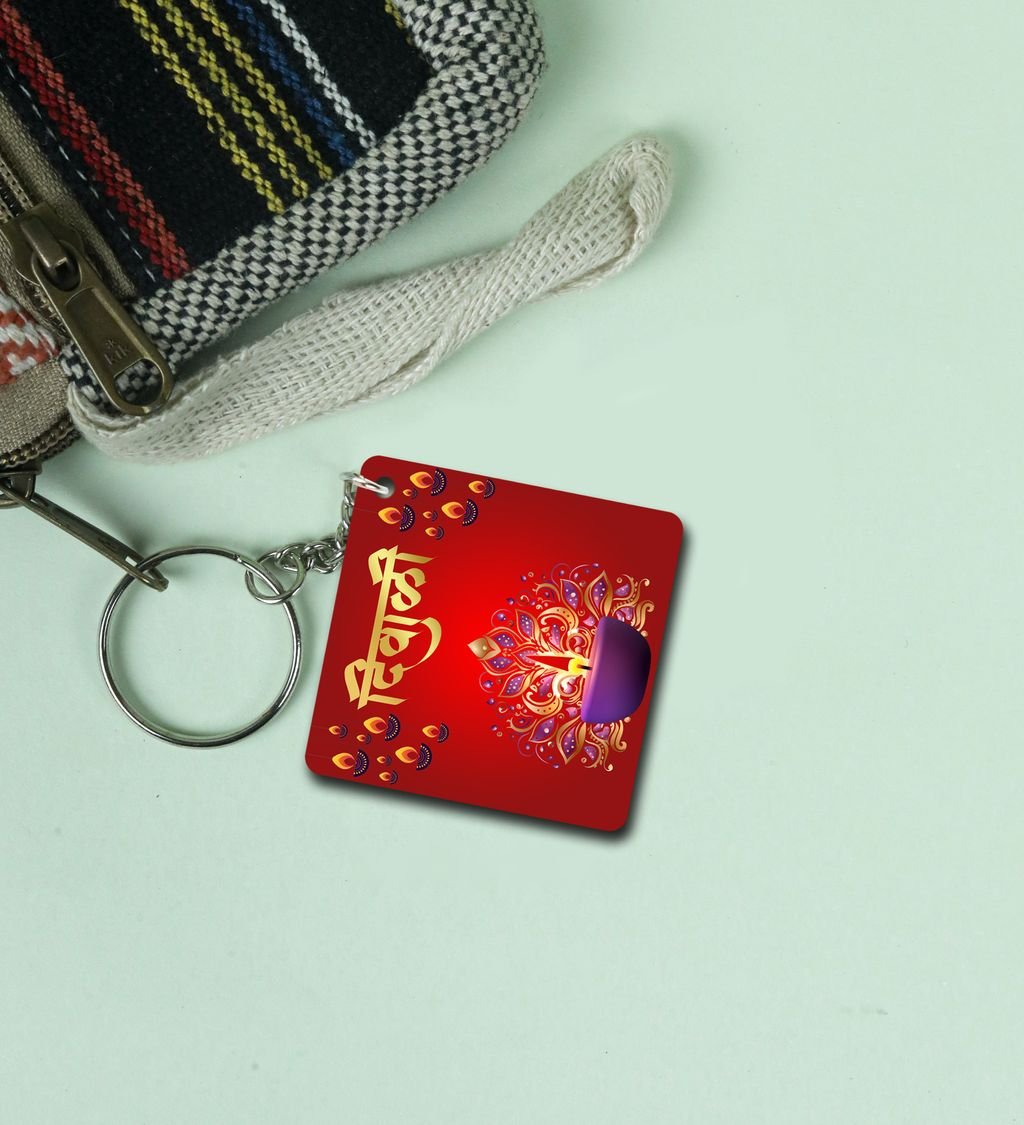 Joy of Togetherness Diwali Slogan Printed Square Keychain