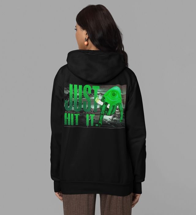 Just Hit It Wear Your Love for Green Life Black Cotton Printed Hoodie For Women