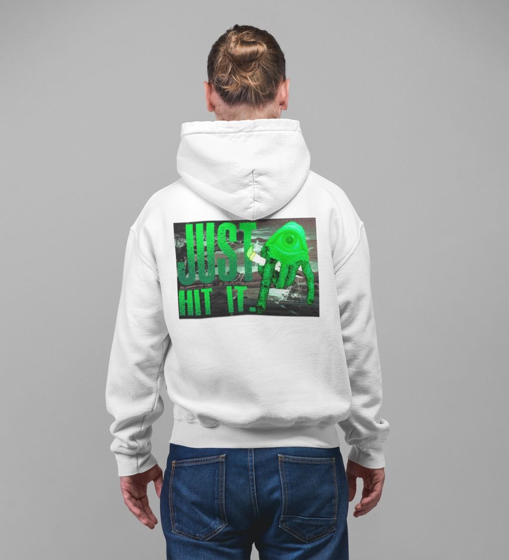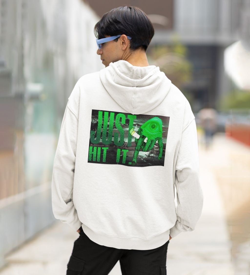 Just Hit It Wear Your Love for Green Life White Cotton Printed Hoodie For Men