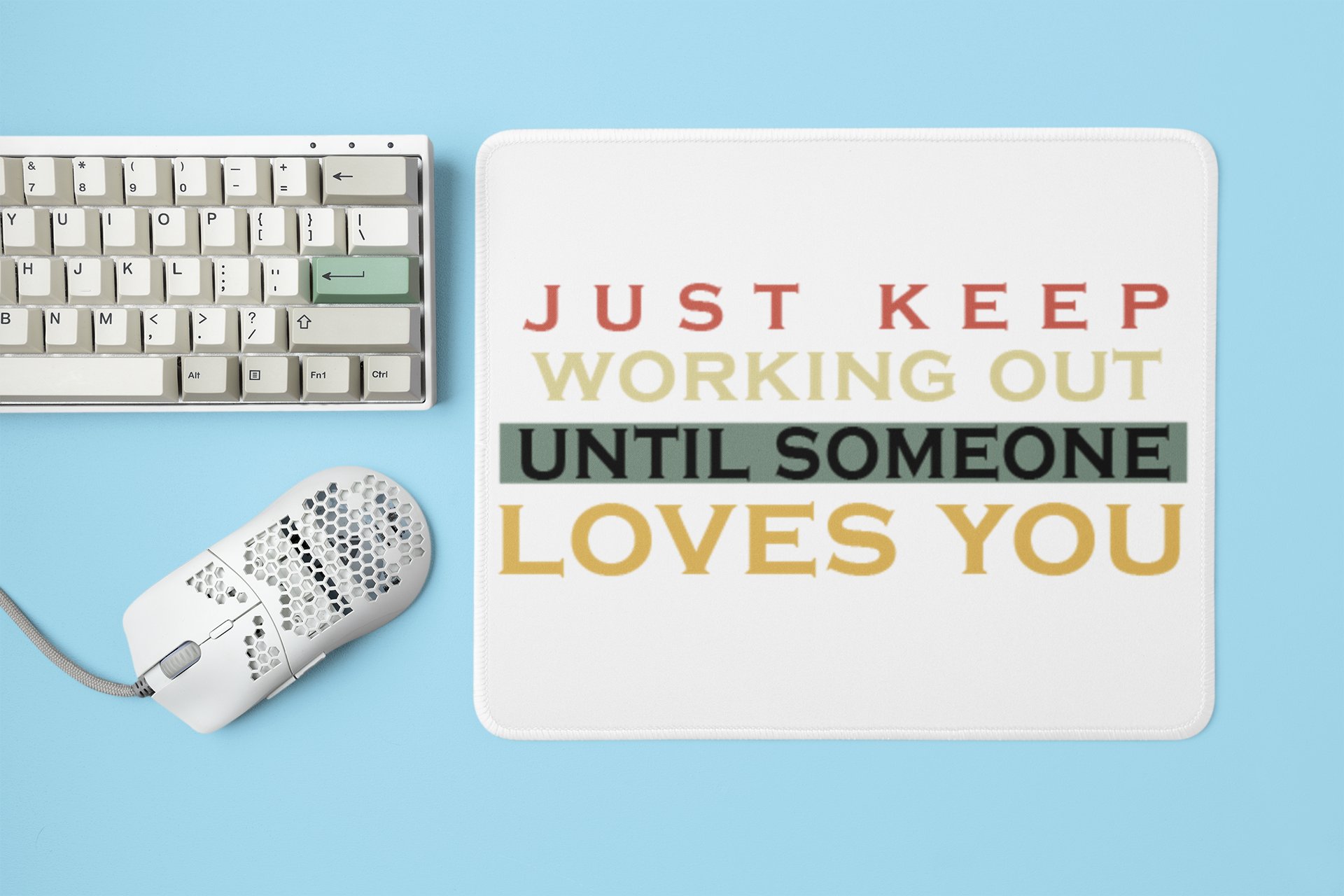 Just Keep Working Out, Until Someone Loves You, (BG Orange, Yellow, Black, White) - Printed Mousepads For Gym Lovers