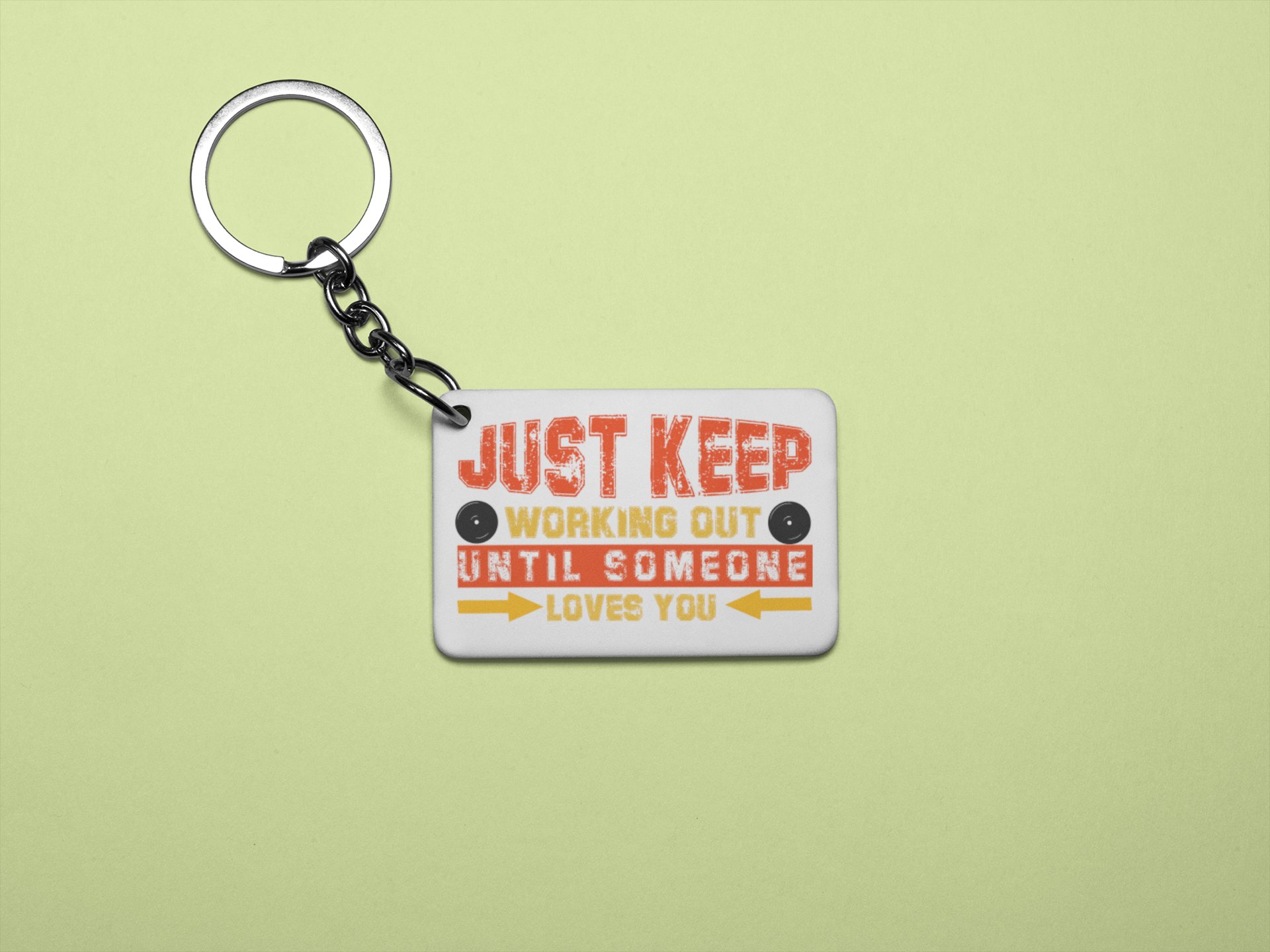 Just Keep Working Out, Until Someone Loves You, (BG Red and Yellow) - Printed Keychains for gym lovers(Pack of 2)