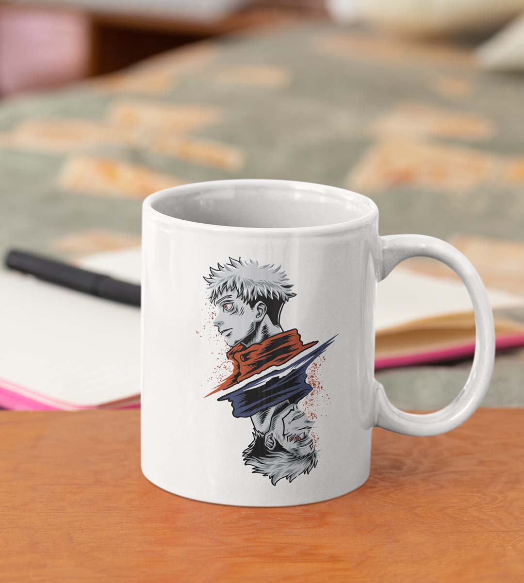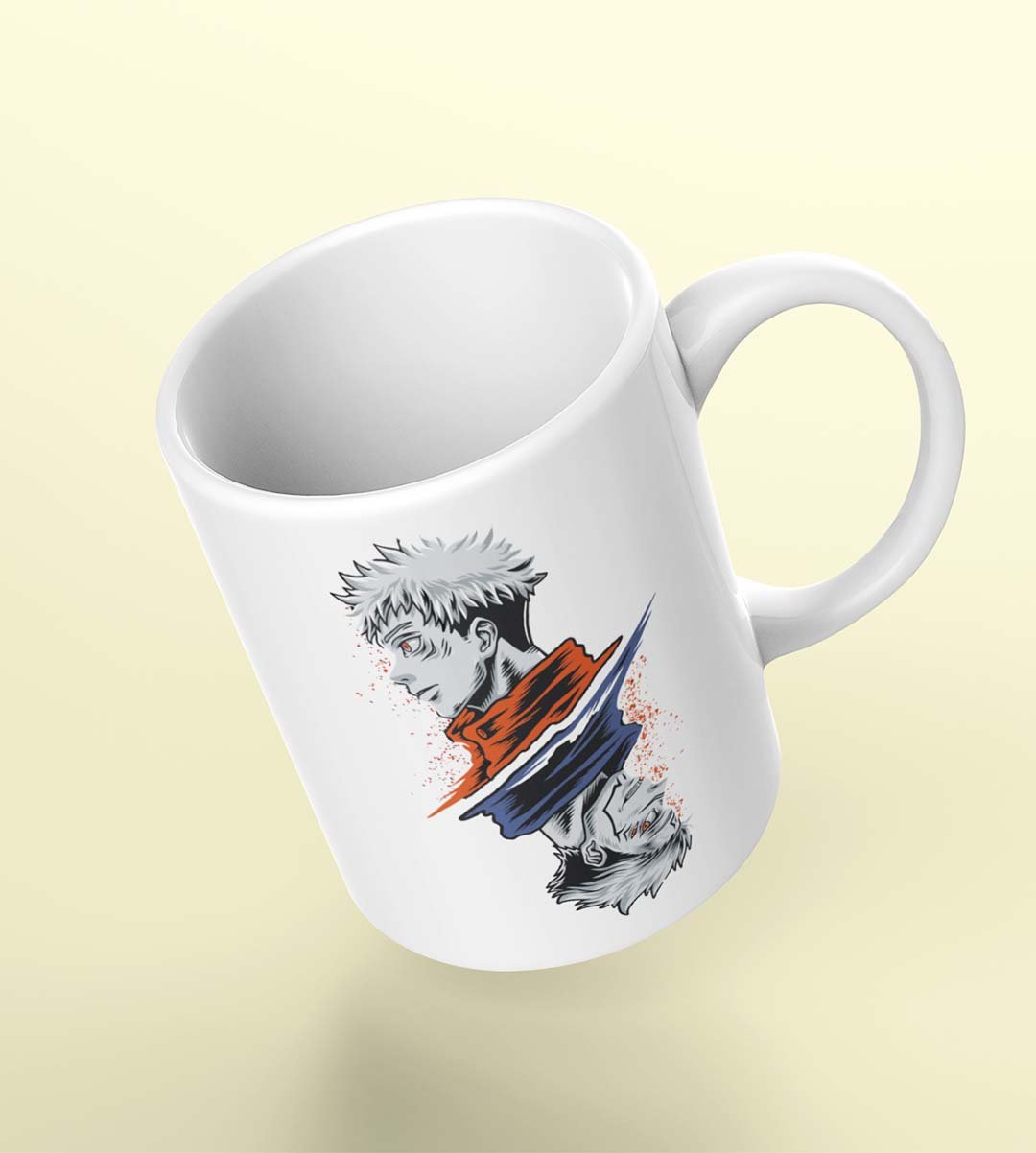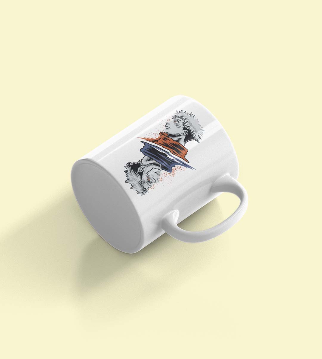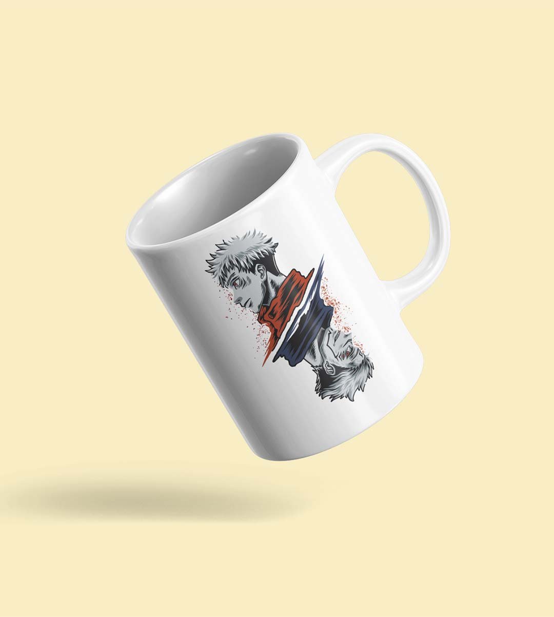 Jututsu facing up and down - animation themed printed ceramic white coffee and tea mugs/ cups for animation lovers