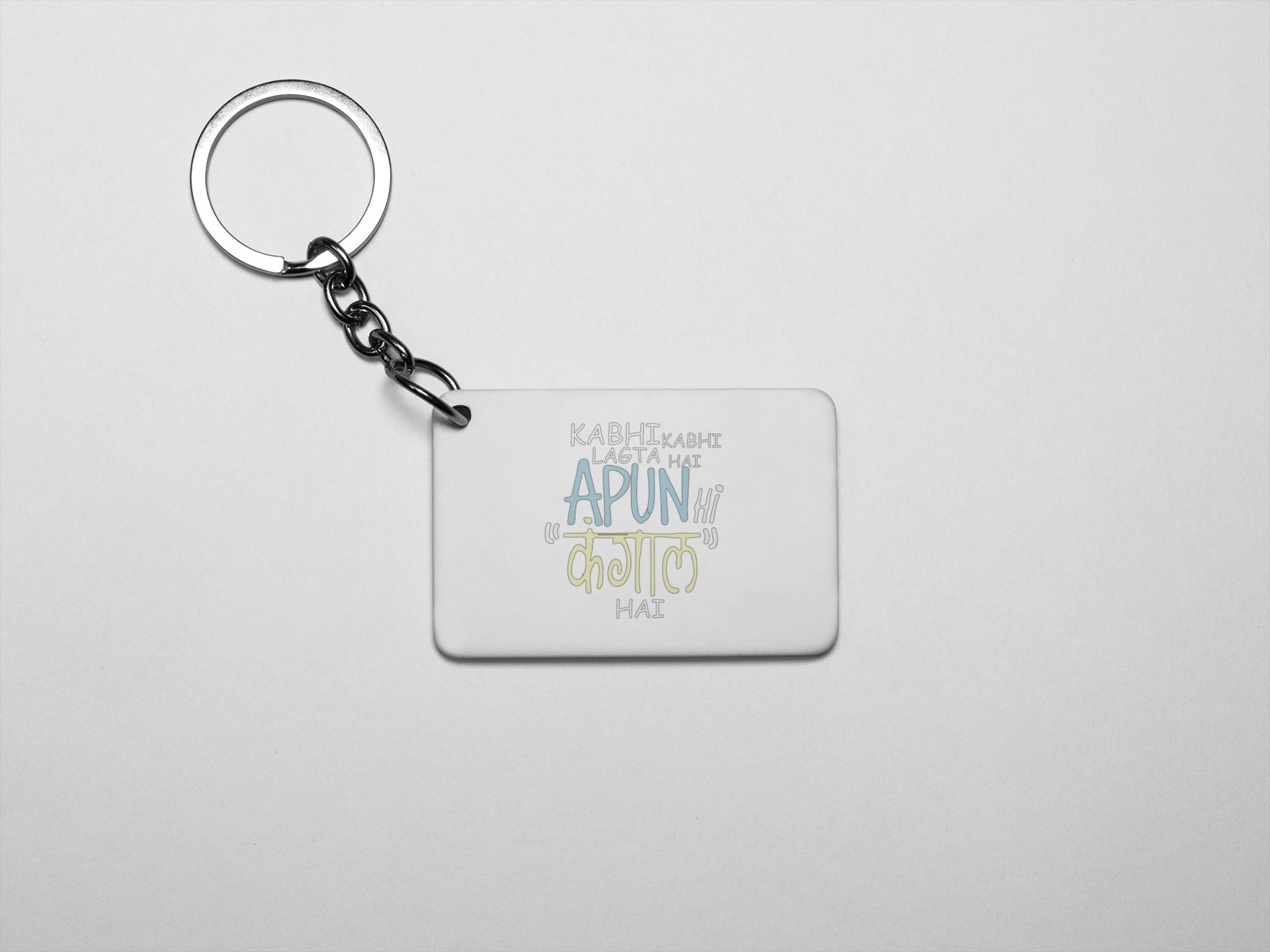 Kabhi Kabhi Lagta Hai Apun Hi Kangal Hai acryllic printed white keychains/ keyrings for bollywood lover people(Pack Of 2)
