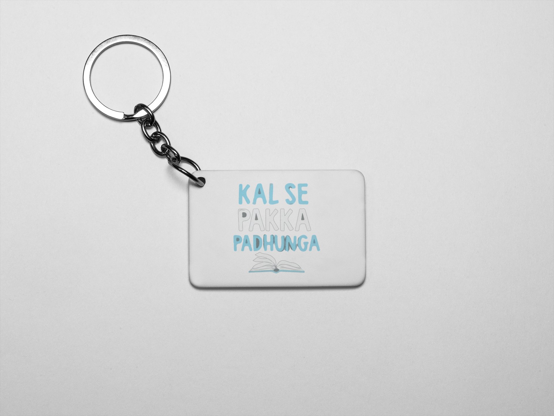 Kal Se Pakka Padhunga- acryllic printed white keychains/ keyrings for bollywood lover people(Pack Of 2)