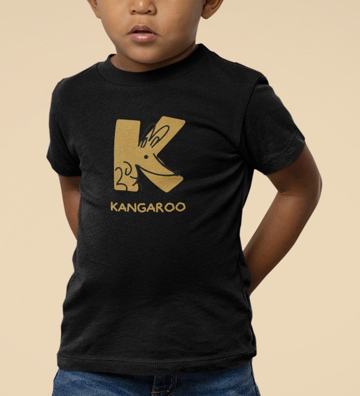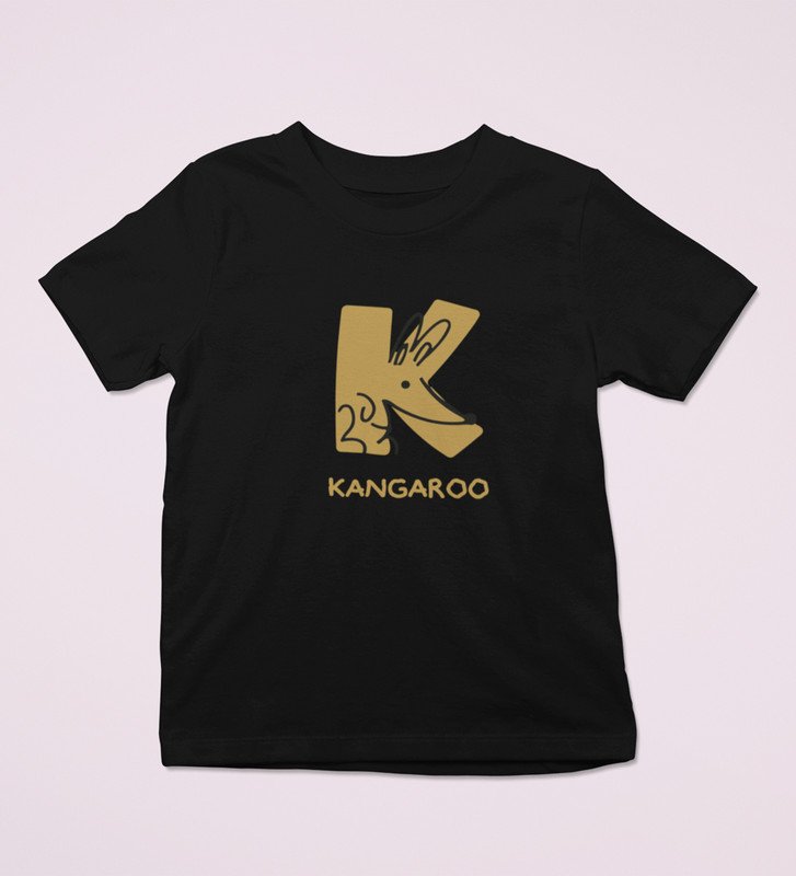 Kangaroo, Printed Cotton Tshirt (Black) for Boys