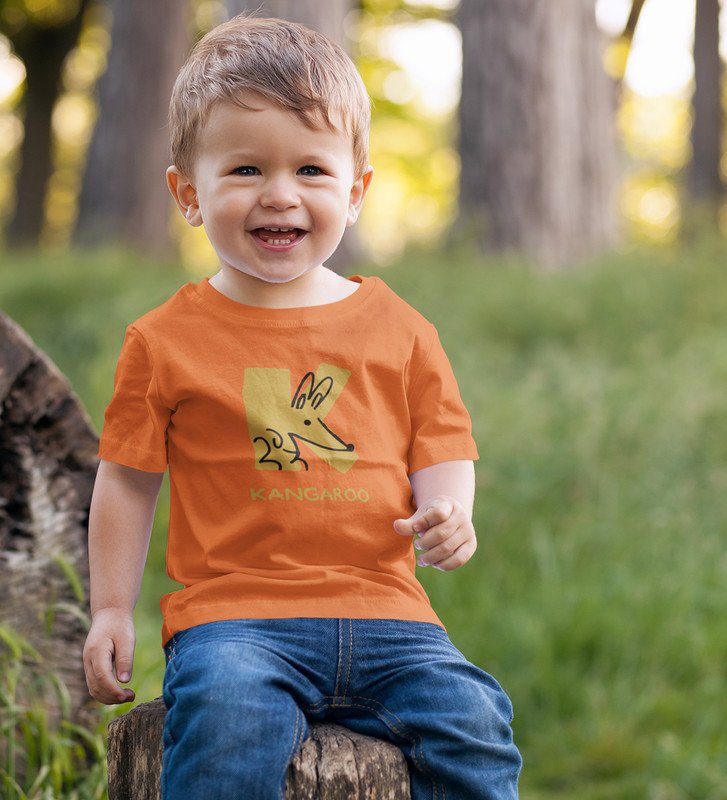 Kangaroo, Printed Cotton Tshirt (orange) for Boys
