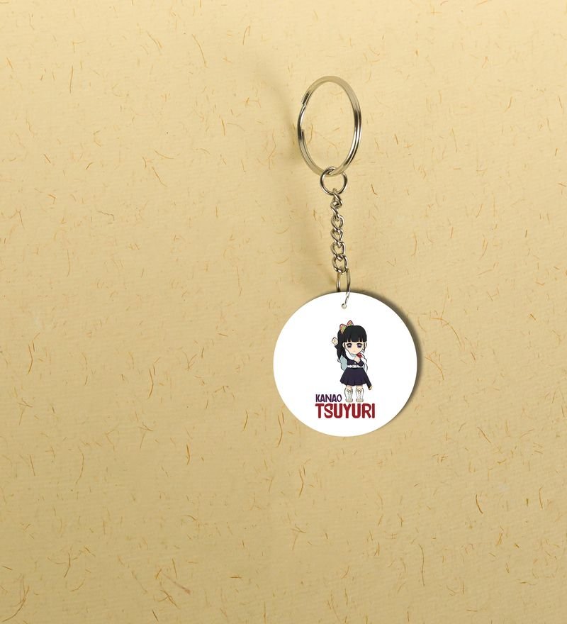 Kawaii Style Girl Character Printed Round Keychain Pack of 2