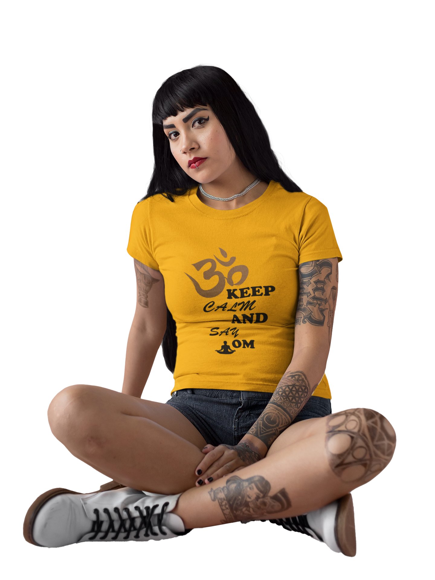 Keep Calm And Say Om-Yellow-Clothes for Yoga Lovers- Red - Suitable For Regular Yoga Going People - Foremost Gifting Material for Your Friends