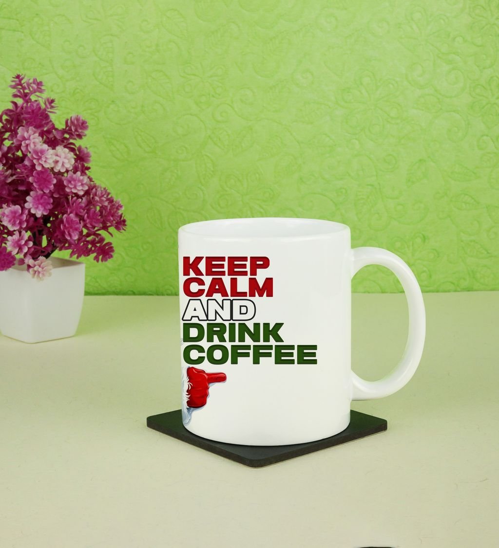 Keep Calm and Sip Happiness with Santa Printed Coffee Mug 250ml