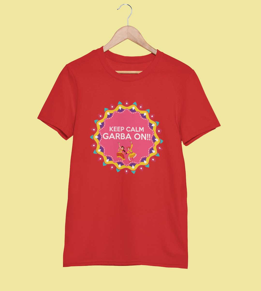 Keep calm printed unisex adults round neck cotton half-sleeve red tshirt specially for Navratri festival/ Durga puja