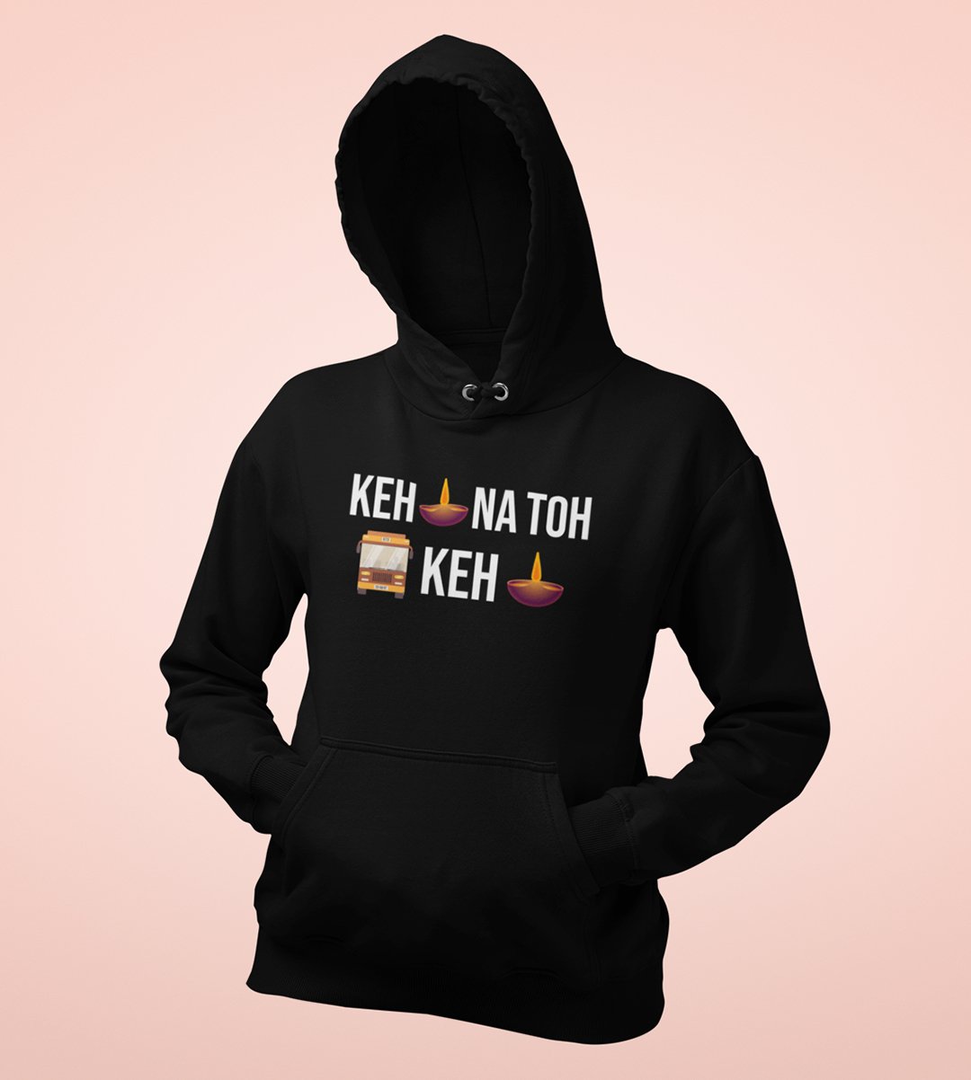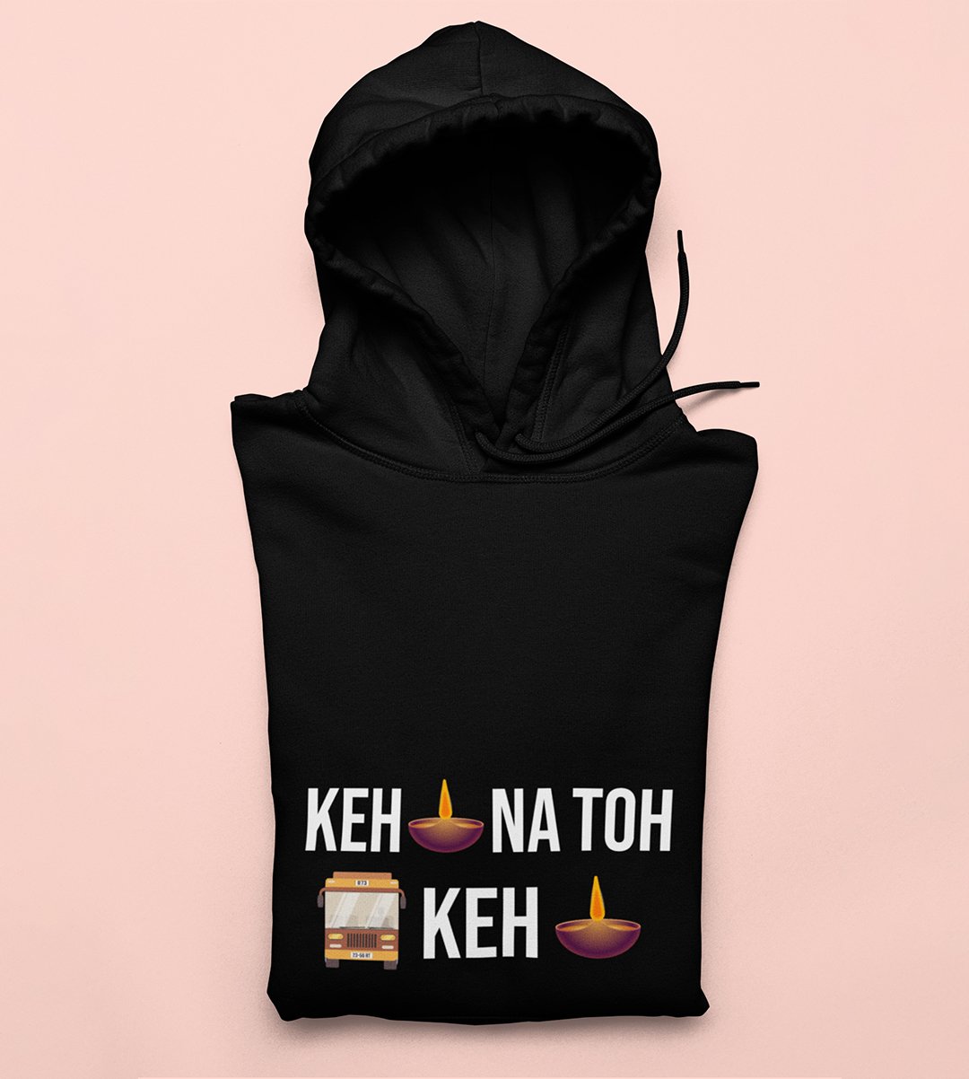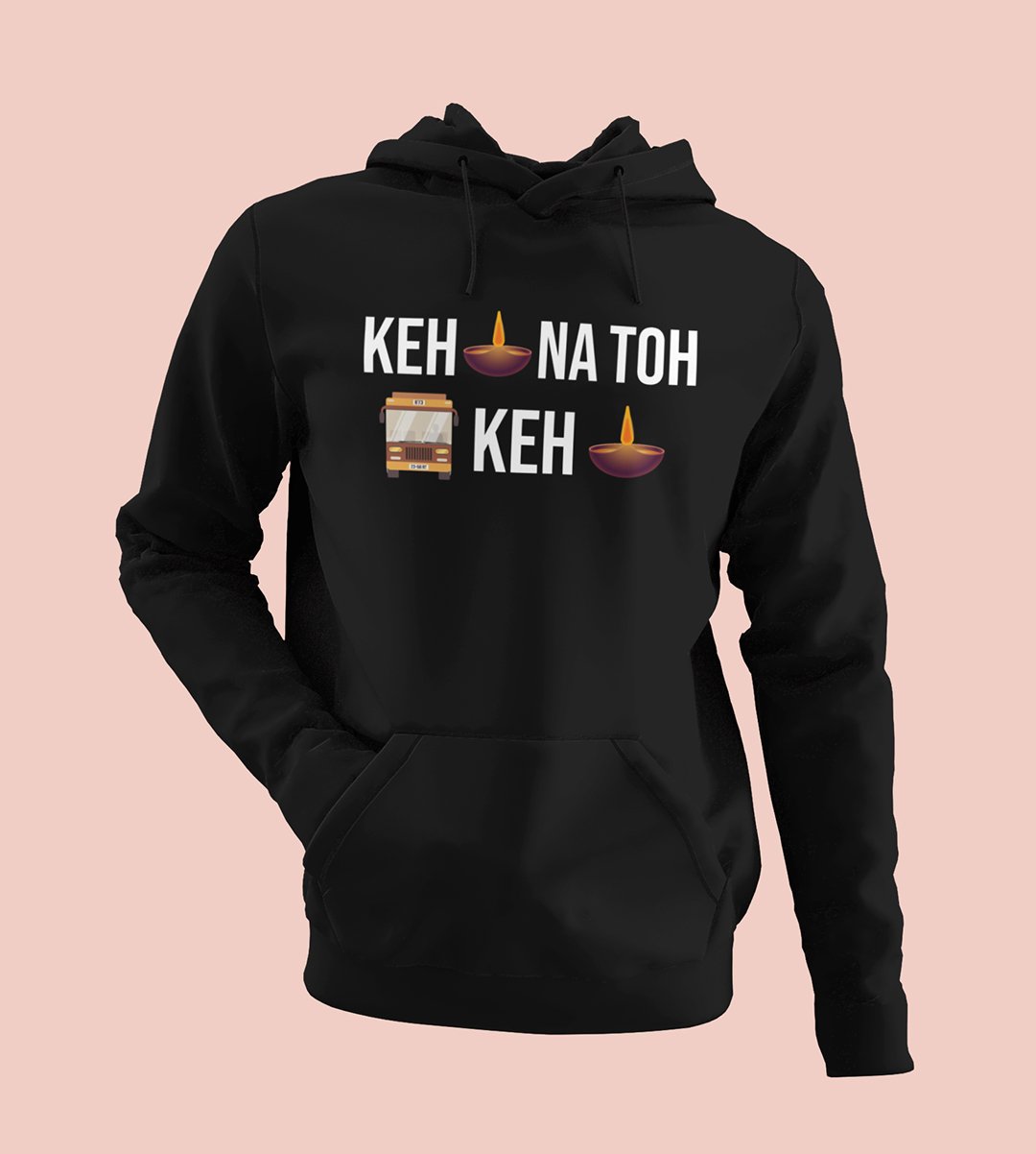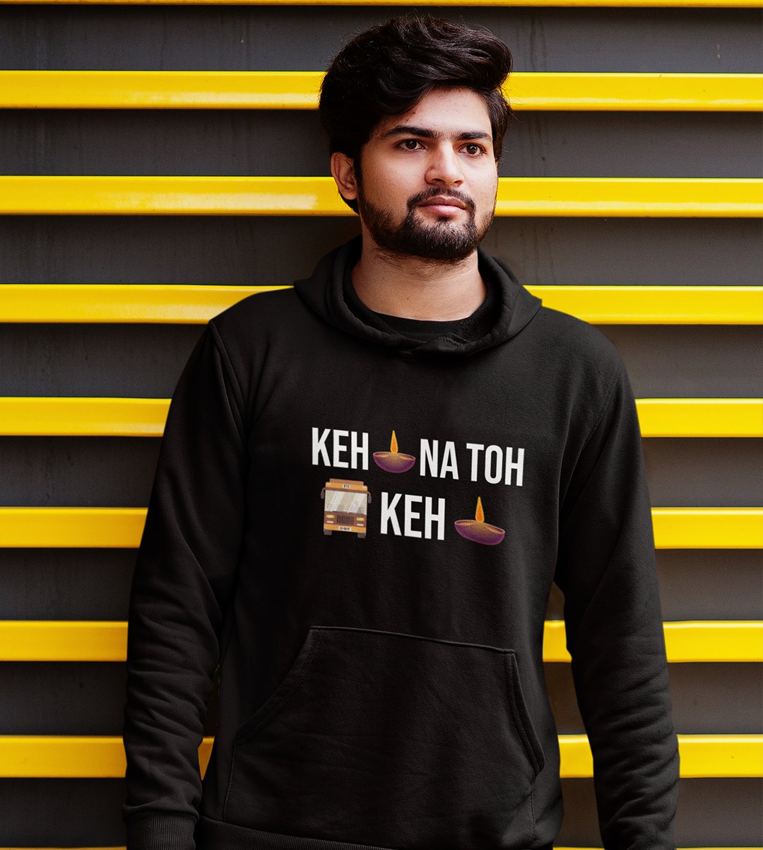 Relive the iconic moment from "Kabhi Khushi Kabhie Gham" with our KKKG Inspired Funny black Hoodie . The playful dialogue "KEH ?? NA THO ??KEH ??" is sure to bring a smile to your face every time you take a sip. It's a delightful addition to your moments, adding a touch of Bollywood humor to your daily routine.