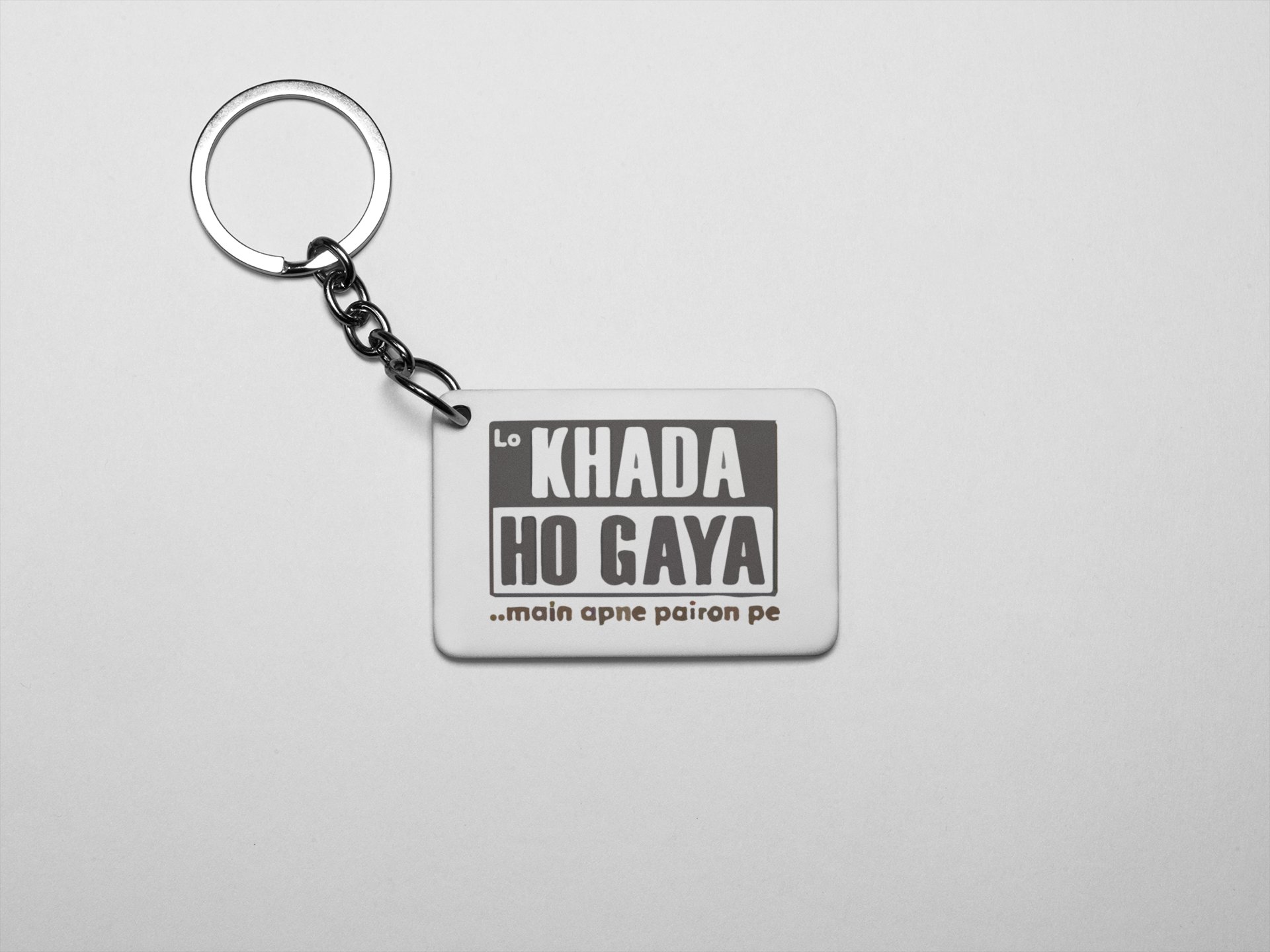 Khada Ho Gaya Main Apne Pairon Pe - acryllic printed white keychains/ keyrings for bollywood lover people(Pack Of 2)