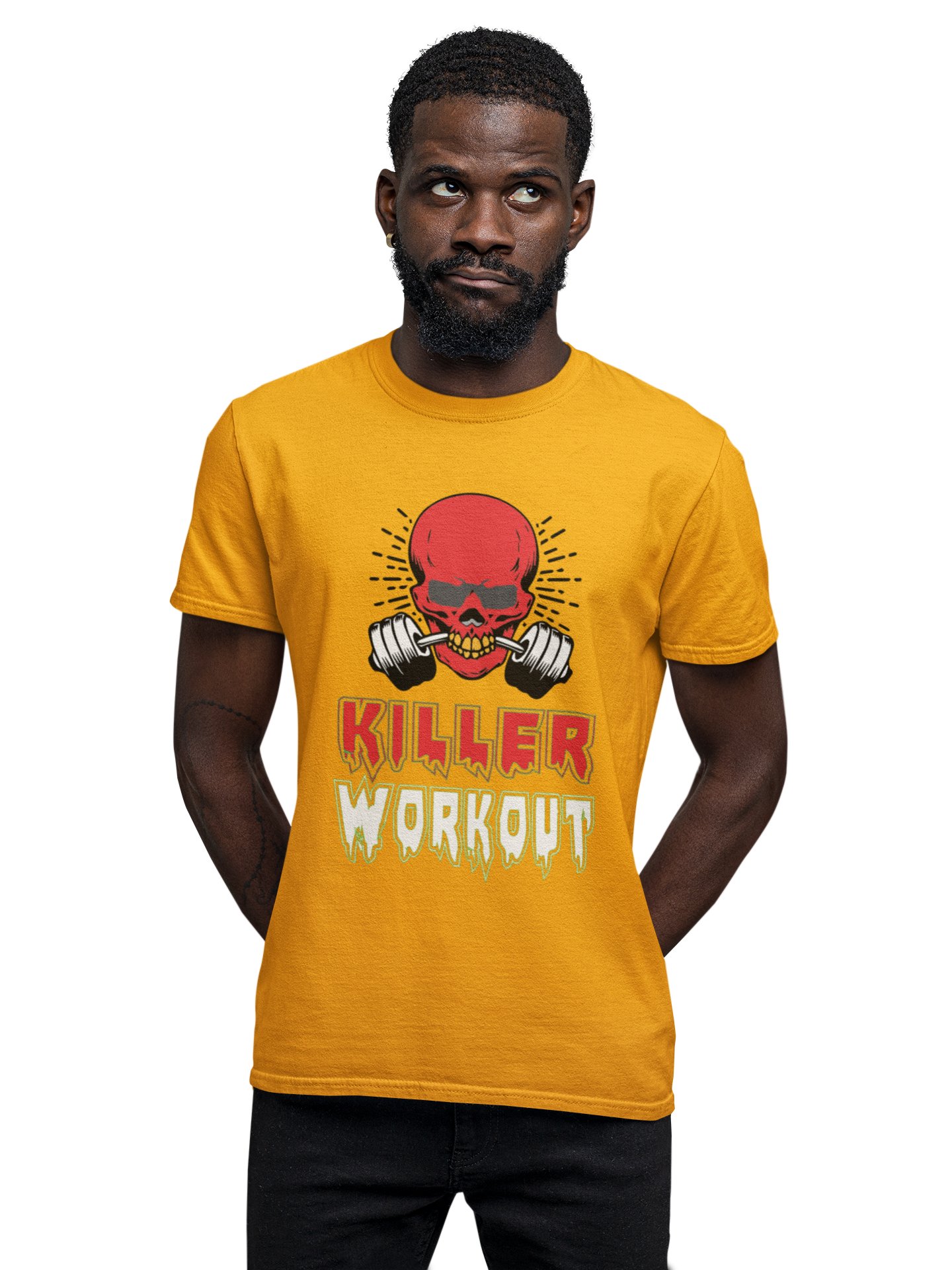 Killer Workout, Round Neck Gym Tshirt (Yellow Tshirt) - Clothes for Gym Lovers - Suitable for Gym Going Person - Foremost Gifting Material for Your Friends and Close Ones
