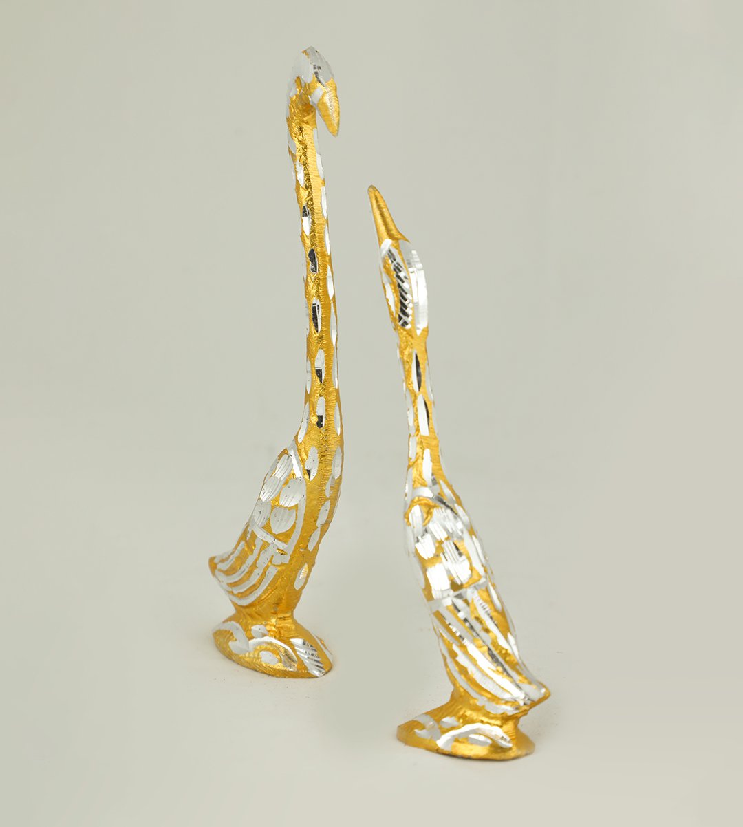 This love Swan pair is made up of good quality metal brass finish and the pair looks attractive with a shiny golden color and is quite durable. It is light weight and can be kept anywhere to bring in love and luck. As per the science of Feng Shui. Add an element of beauty to your home decor. It can also be an ideal addition to your living room. Use clean and dry cloth to clean the product. It could be a memorable gift to your wedding, house warming, anniversary, birthdays or festive occasions, it can be a memorable return gift. What can be a better gift than a handcrafted antique metal golden couple swan statues for your loved ones? What are you waiting for? Grab it now.