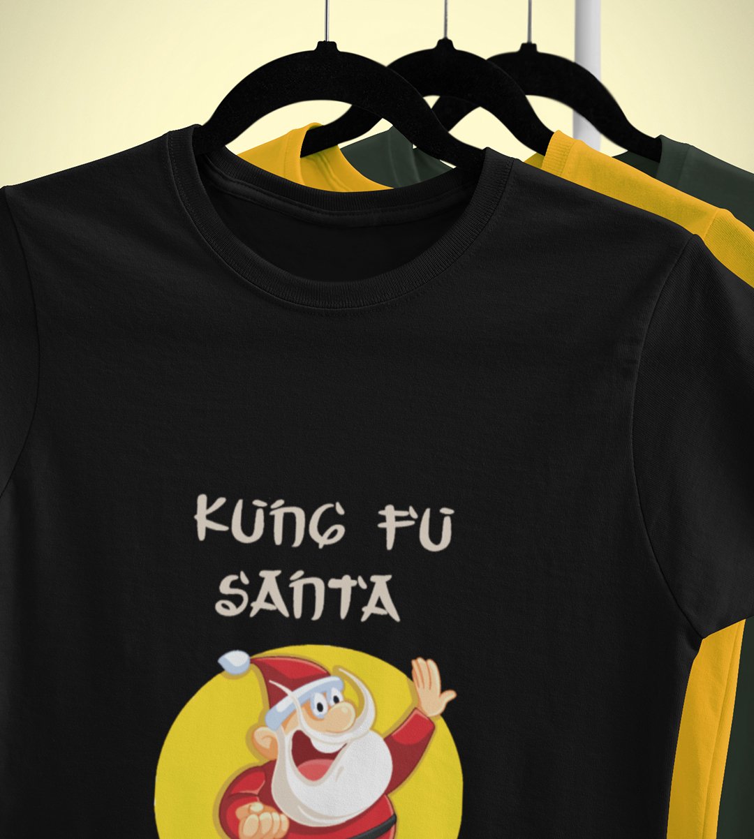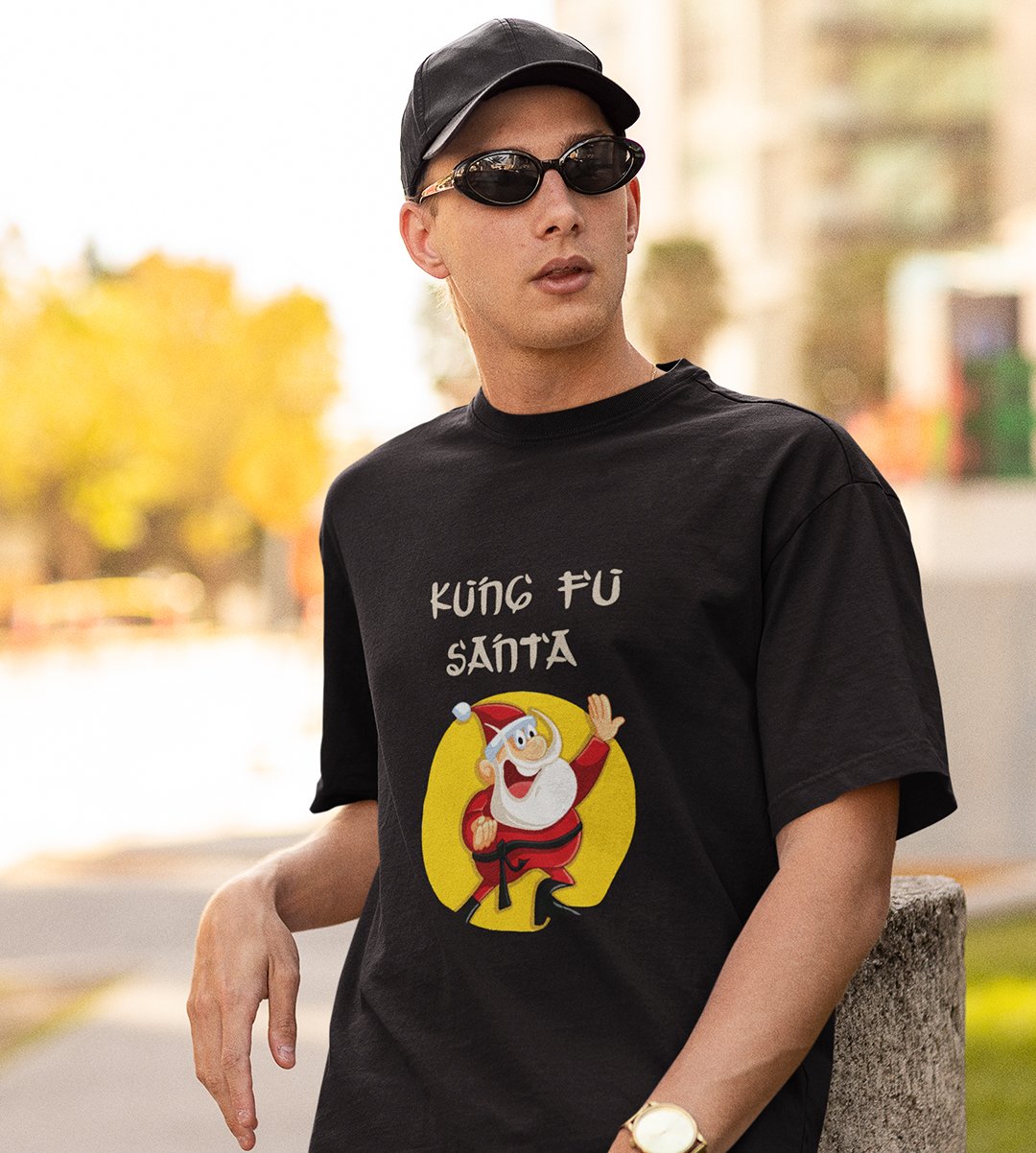 Kung Fu Santa: Perfect T-shirt For Secret Santa(Black) Best Gift For Boys Girls