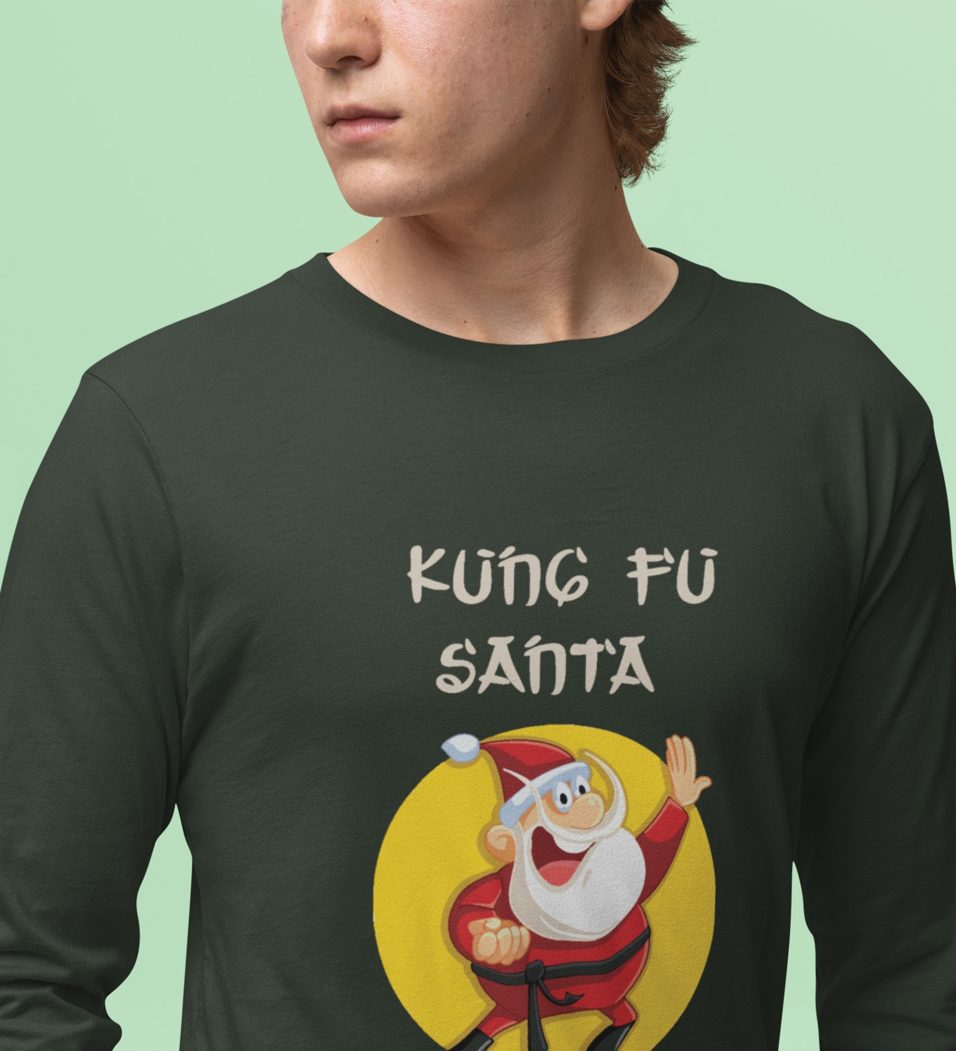Kung Fu Santa: PerfectFull Sleeve T-shirt For Secret SantaGreen Best Gift For Boys Girls
