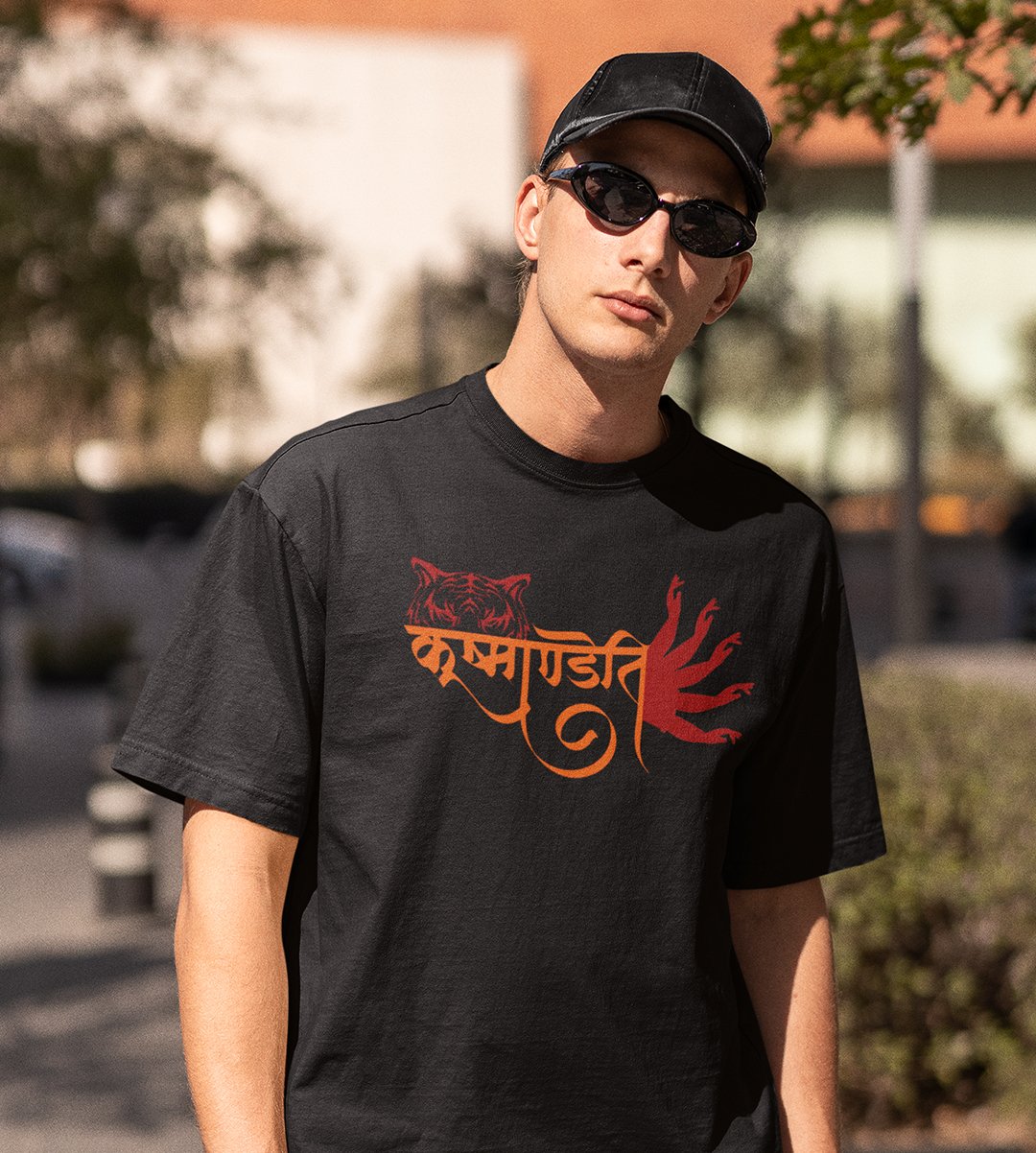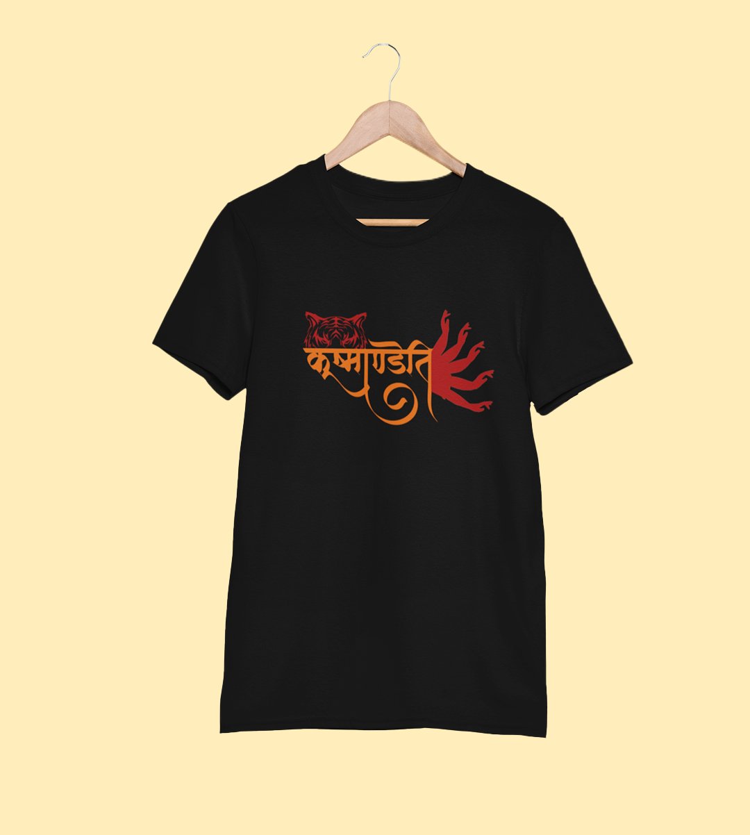Kushmandani printed unisex adults round neck cotton half-sleeve black tshirt specially for Navratri festival/ Durga puja