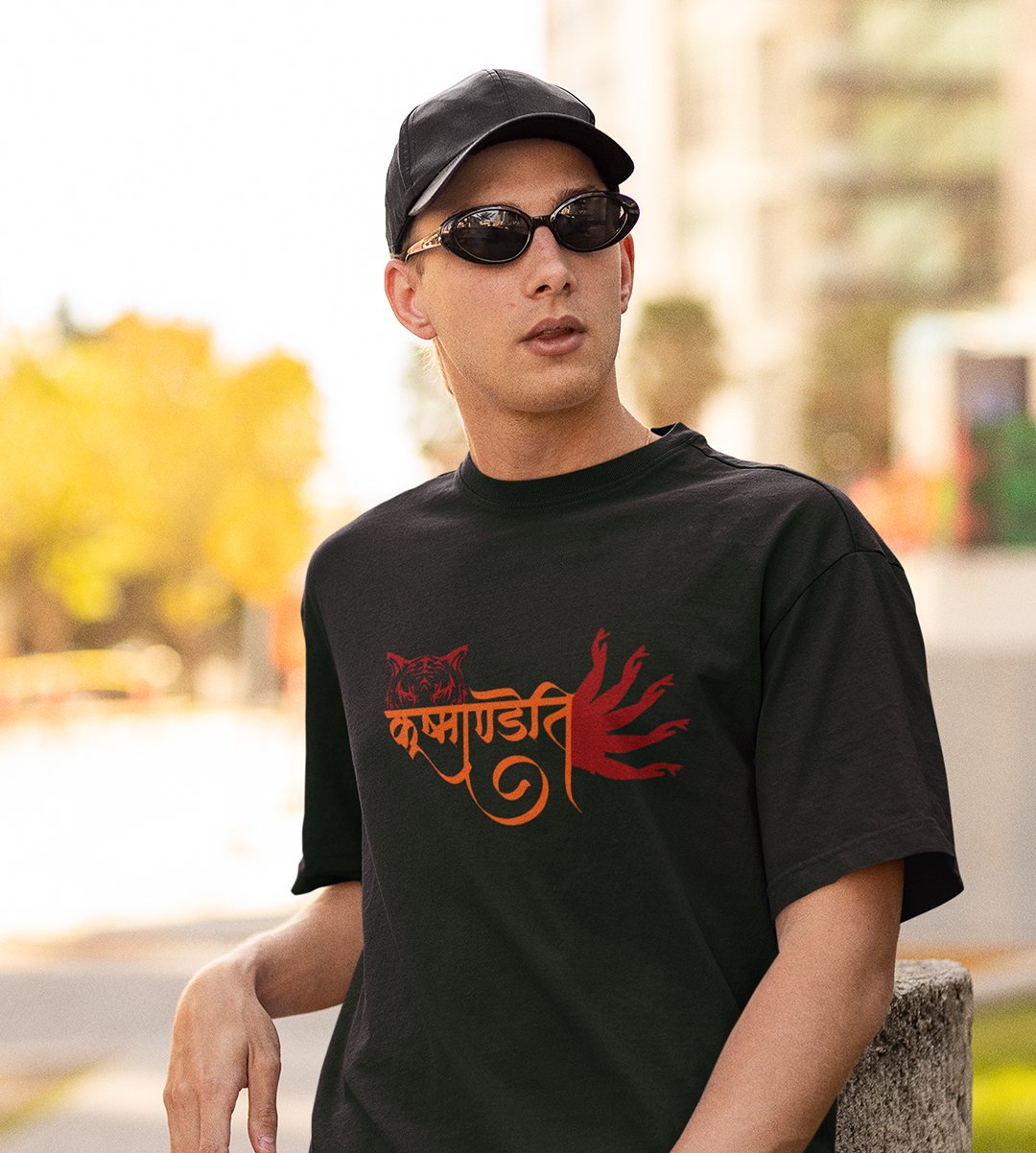 Navratri is a very auspicious festival for hindus. It takes place at the beginning of October and sometimes September. Enjoy the 9 days of festivities with full zeal and make yourself submerged in the love of Maa Durga. Navratri is also known as Durga Puja. And with this Tees, you can shine like a star during this festive season with our navratri themed cotton half sleeved Tshirts. You can pair our t-shirts with trousers and denim of your choice and make it a weekday smart casual or weekend wear. This is durable. This tshirt is smooth and soft which makes you comfortable to wear during all seasons. The printing in it is durable and odourless. It has five sizes, S,M,L,XL,XXL. The Tshirt colour is intact even after repeated washes. It can be kept in your wardrobe and hangers. Please avoid washing mashine to clean this Tee, it may affect the print. Hand wash only. We have brought you many navratri related designs printed on our different colour Tshirts to choose from. Grab it now.