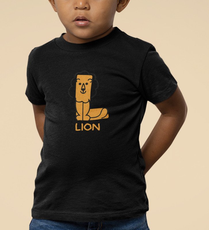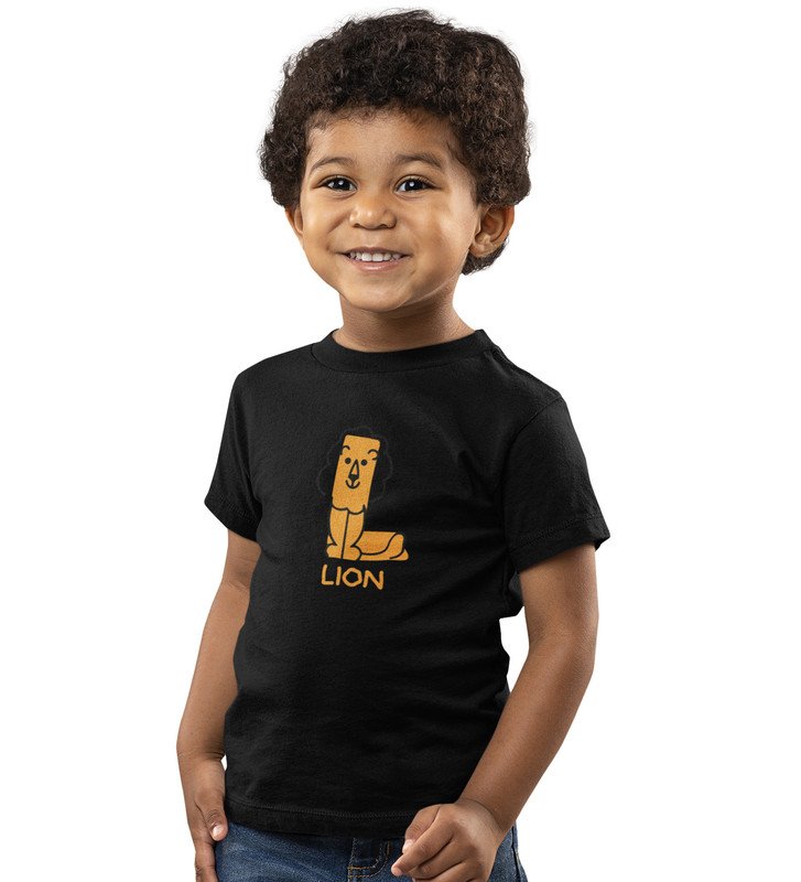 Lazy Lion, Boys Printed Crew Neck Tshirt (Black)